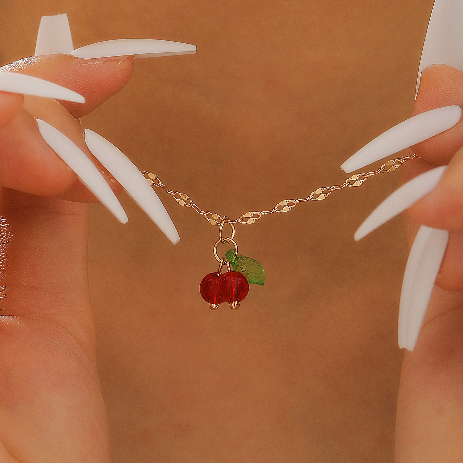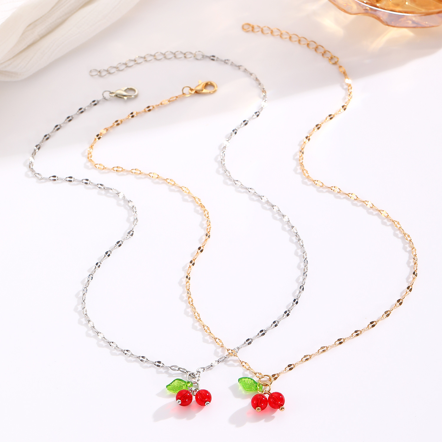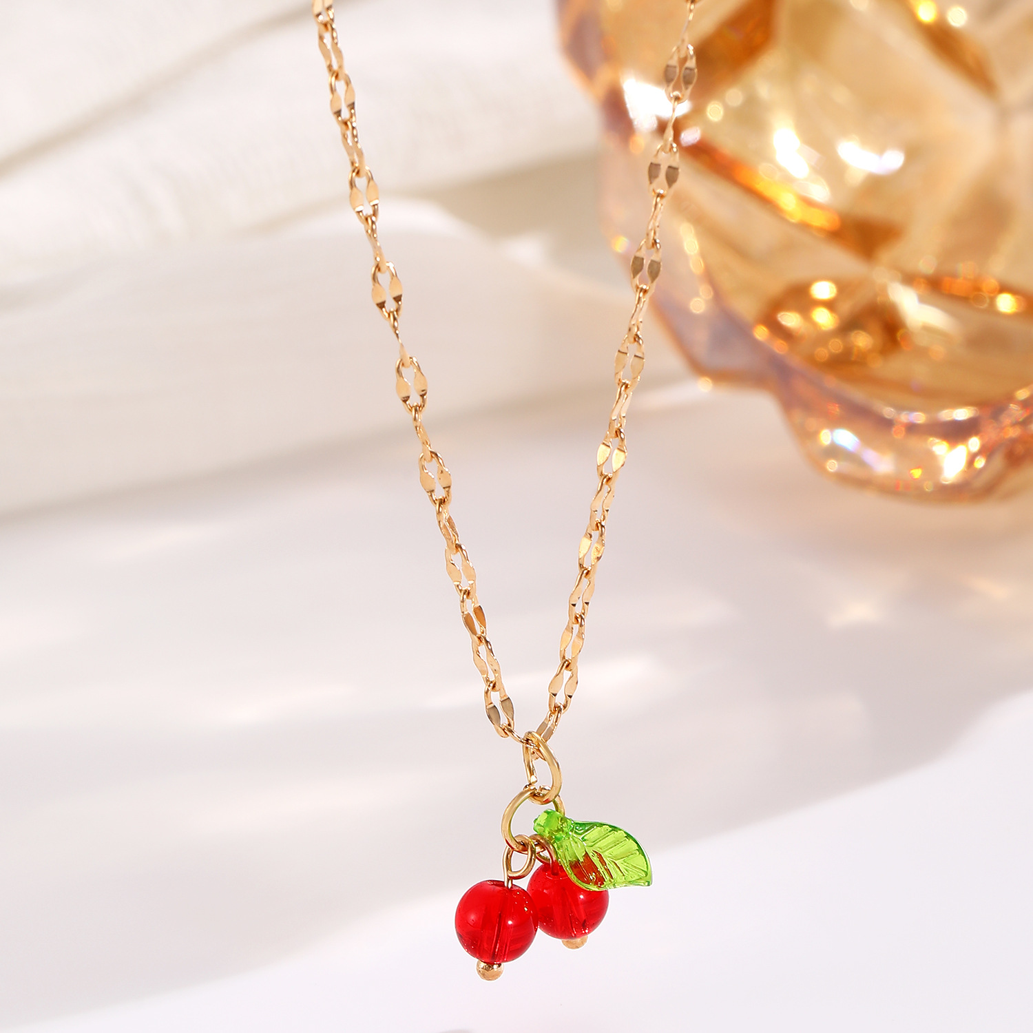 Europe and the United States cross-border jewelry sweet temperament diamond women's necklace exquisite cherry copper set zircon fruit clavicle chain necklace
