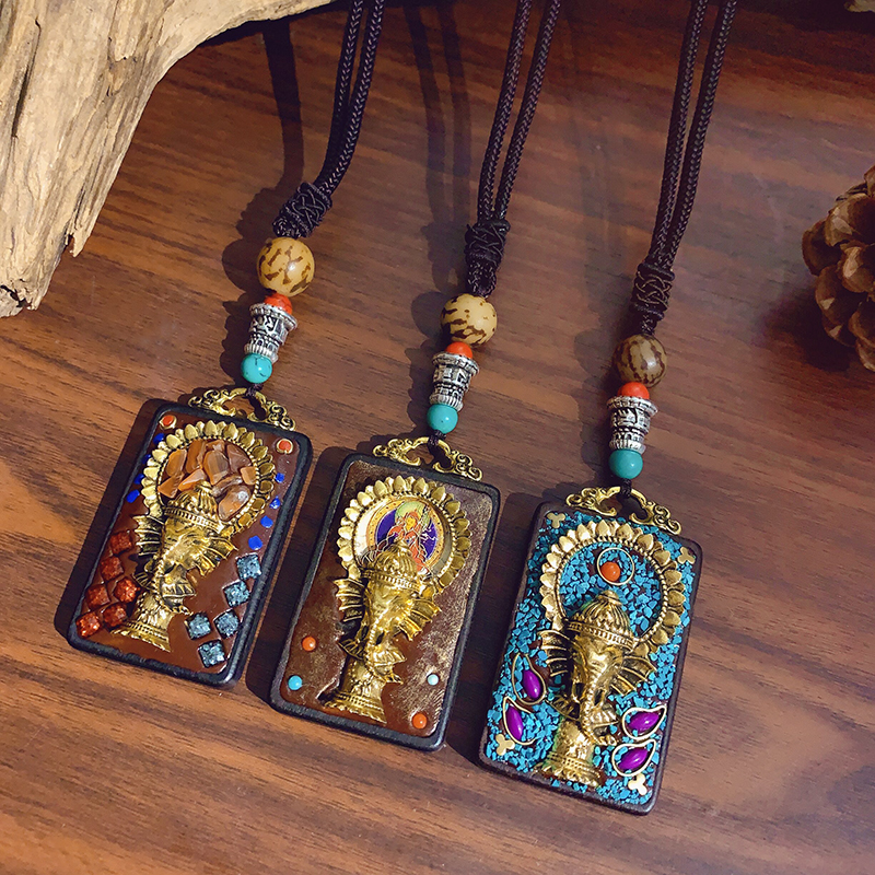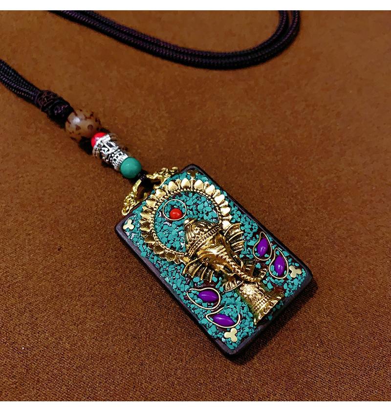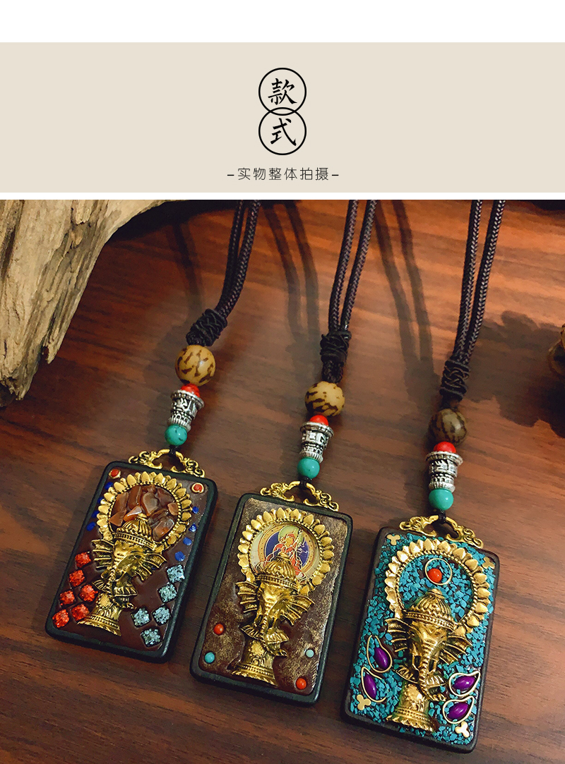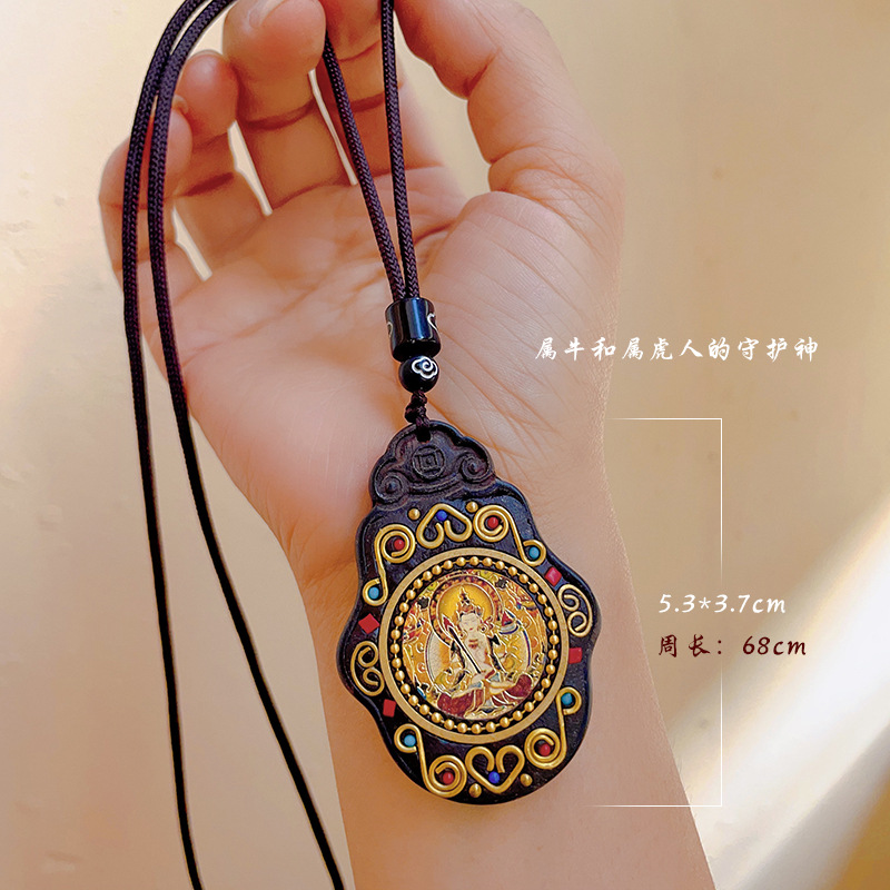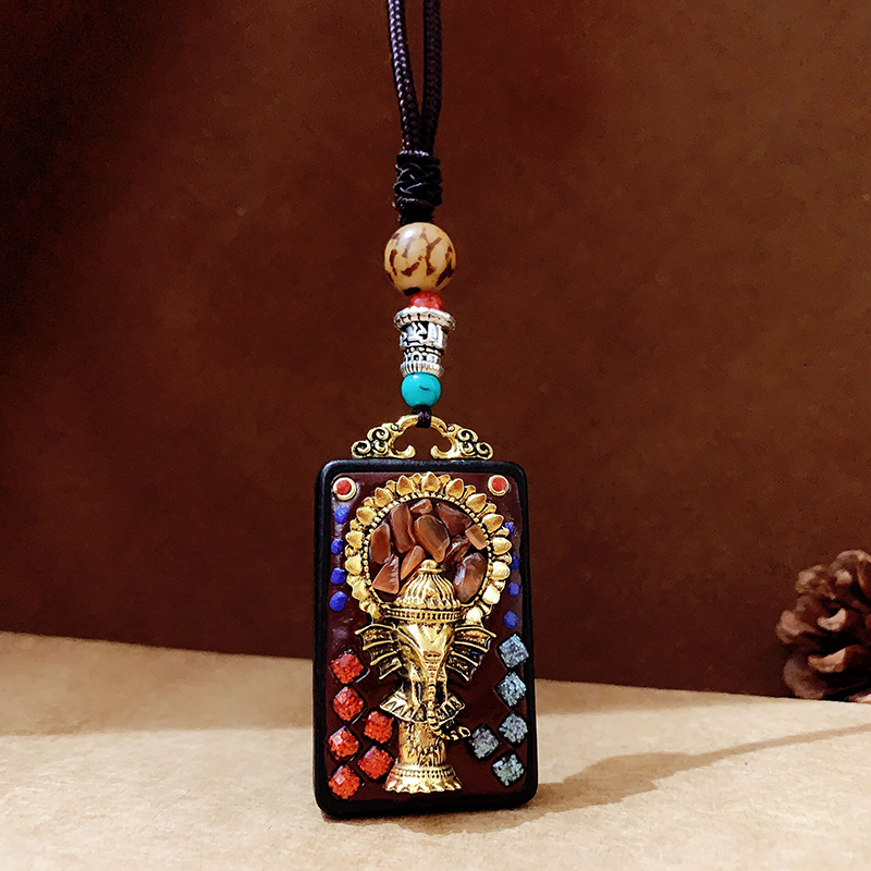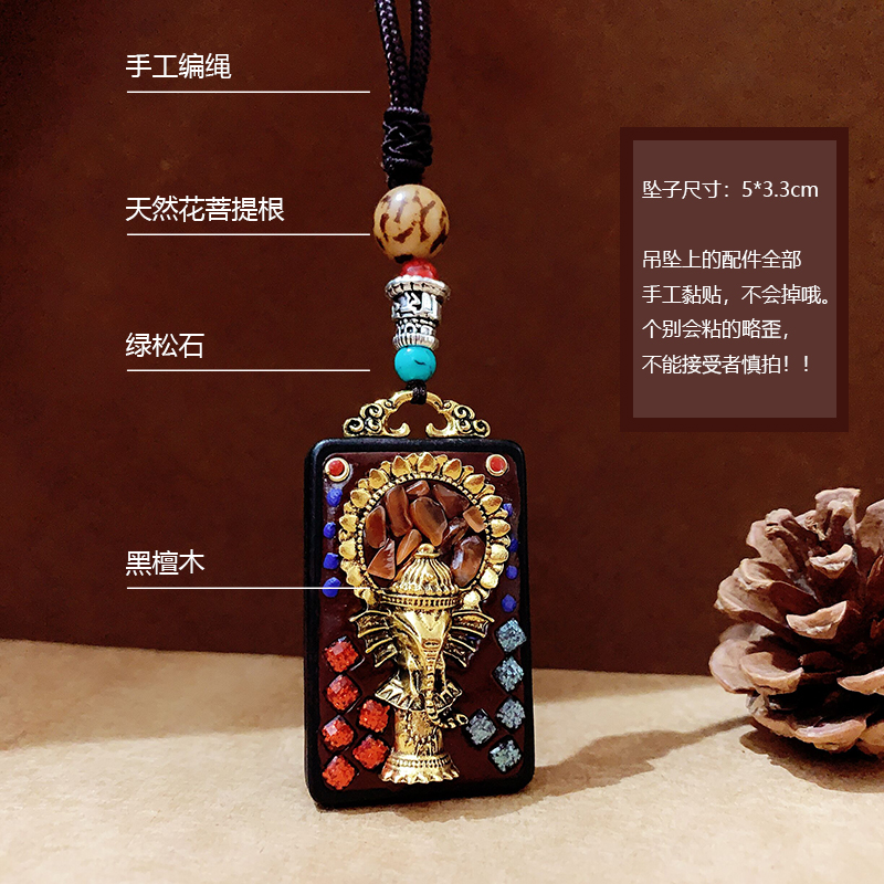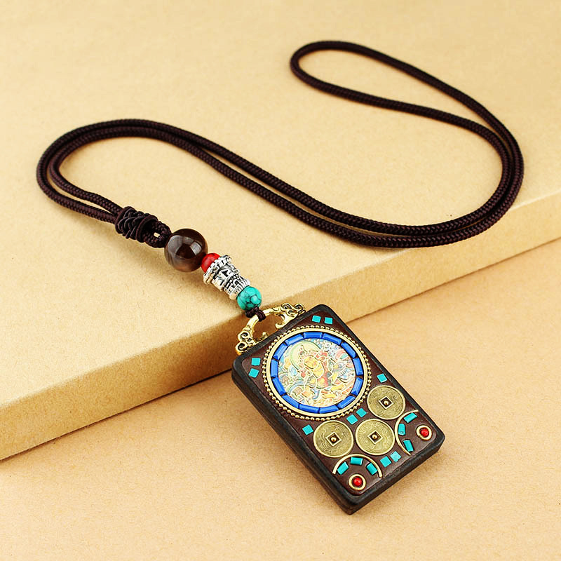 Color: Nepalese wind wheel ebony buddha amulet necklace