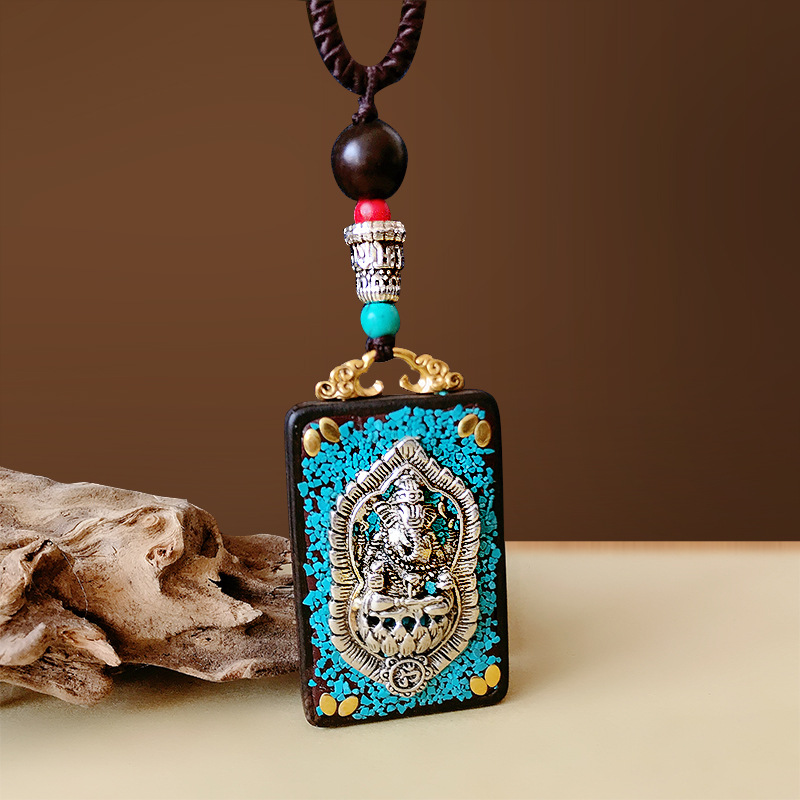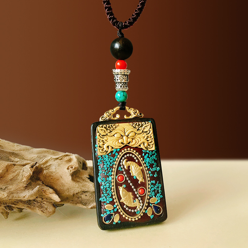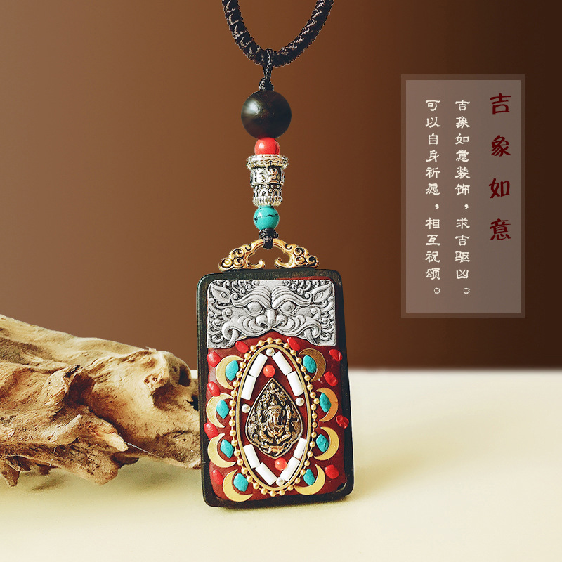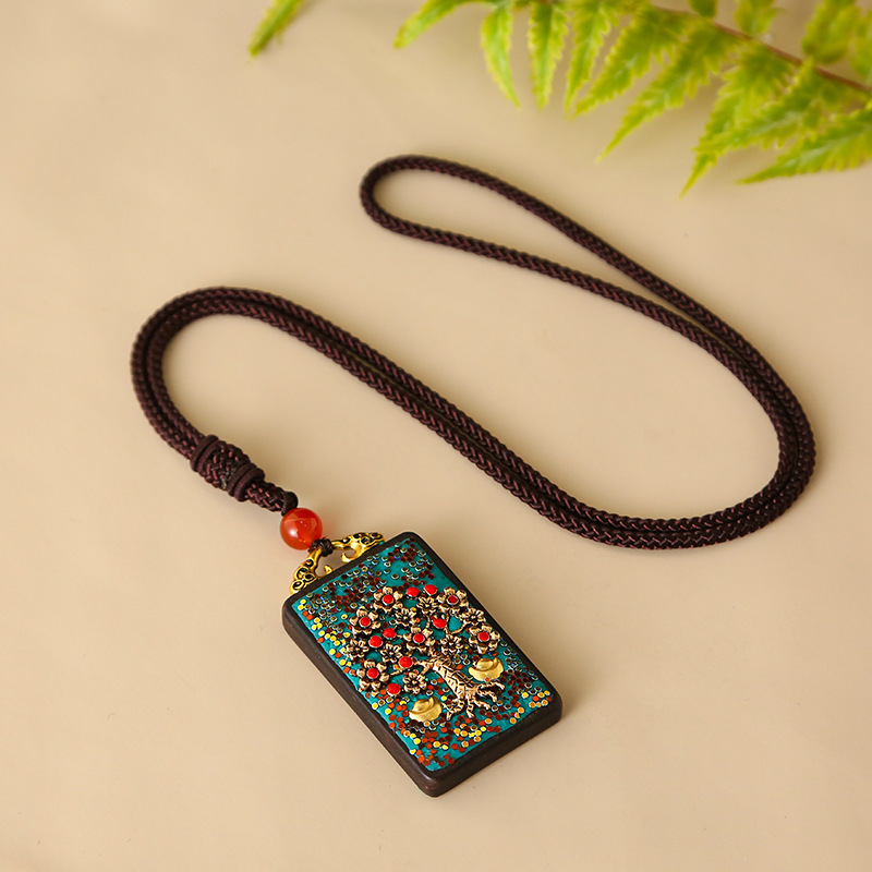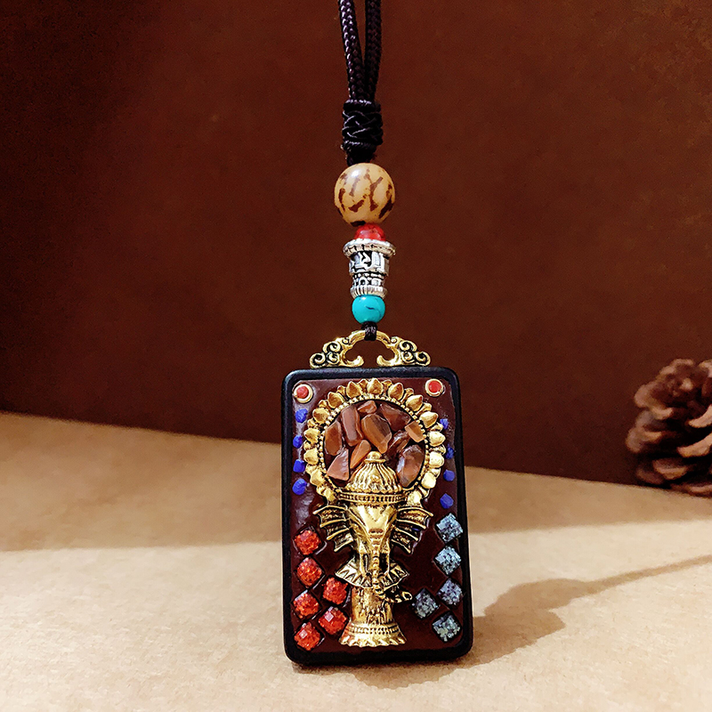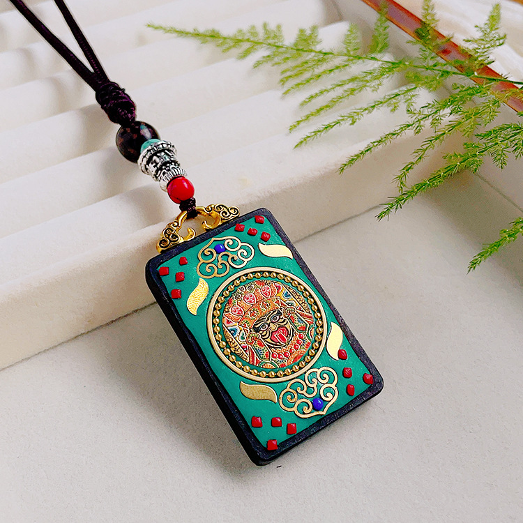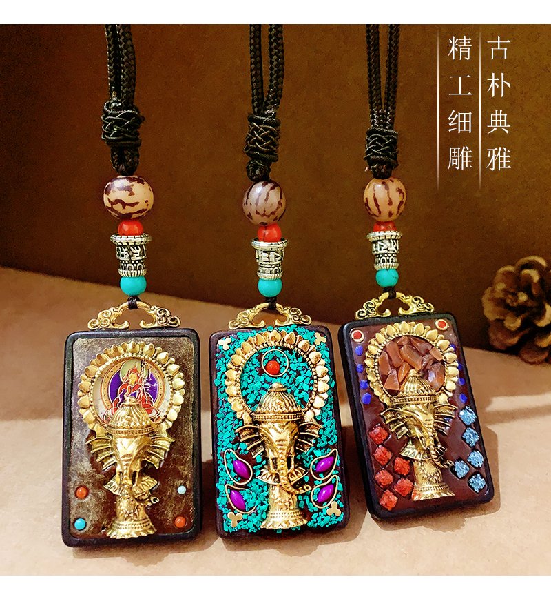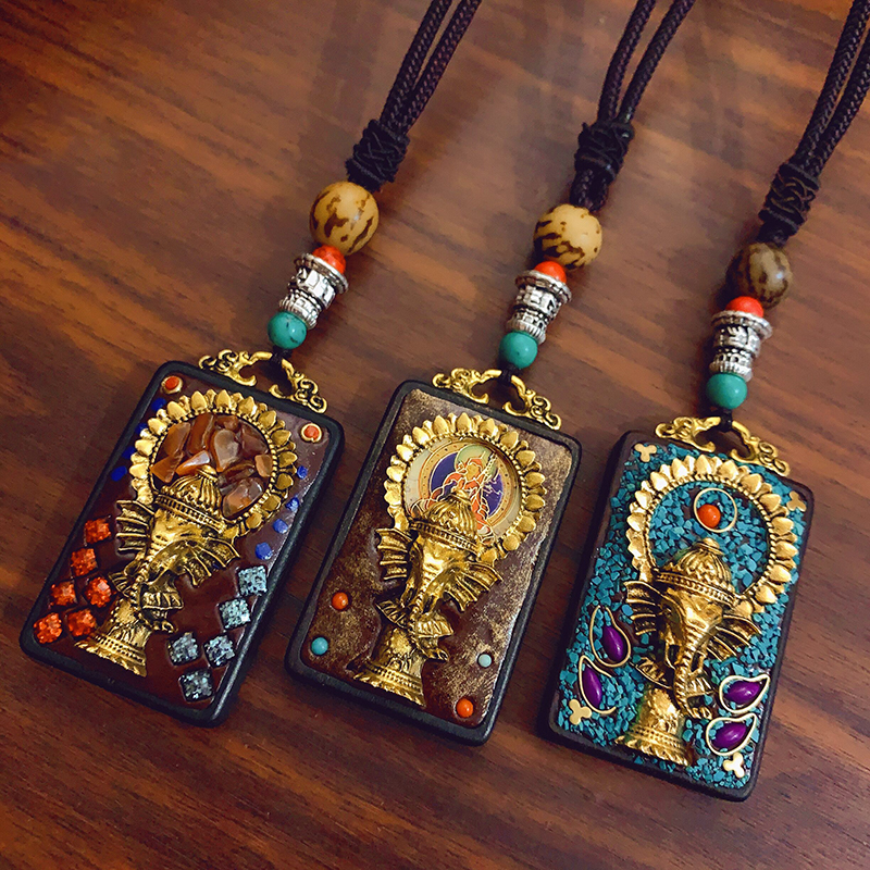 Color: Nepalese wind wheel ebony buddha amulet necklace