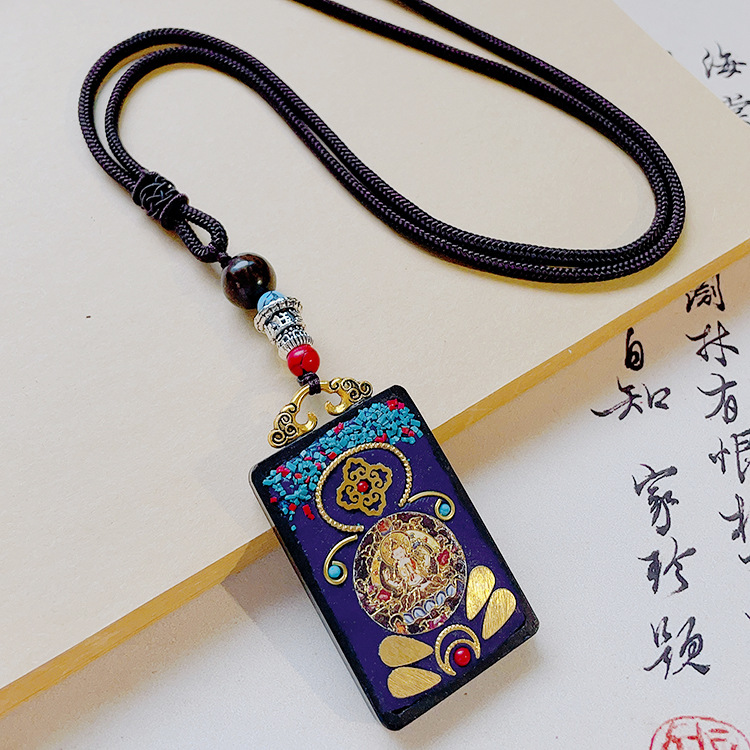Color: Nepal blue brand ebony auspicious buddha amulet necklace