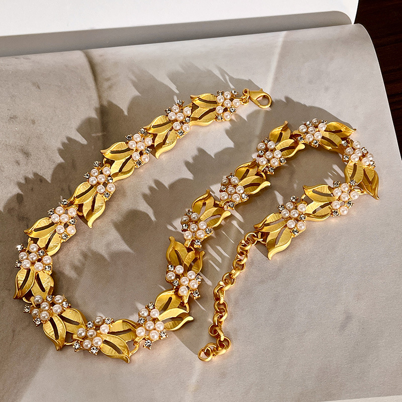 Color: 2404282b yellow oval crystal full diamond pearl necklace