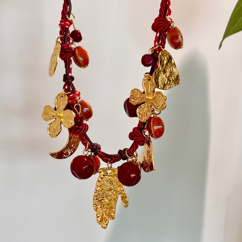 Color: 2506290 love flower moon multi-element ceramic beaded necklace