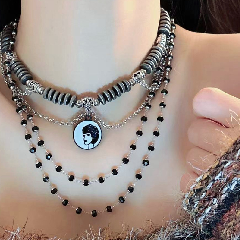 Color: 2405373 multi-layered beaded portrait pendant necklace