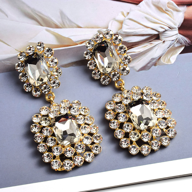 European and American style fashion earrings atmosphere diamond round geometric rhinestones women's accessories wholesale cross-border supply 636