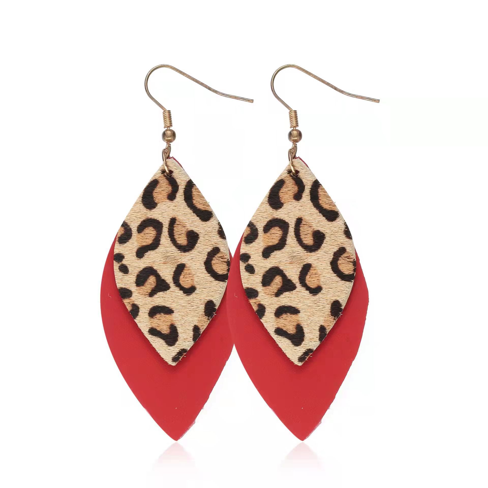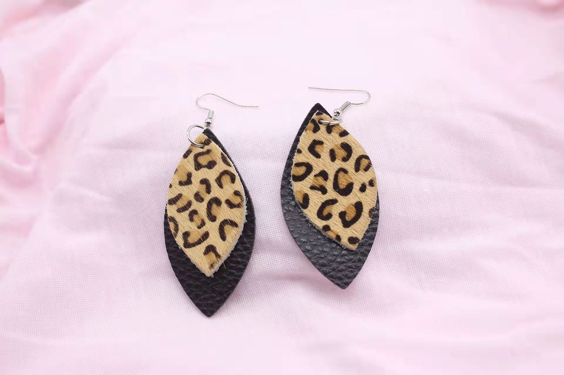 Cross-Border Horse hair leopard print leather earrings ladies European and American leopard print flower double Horse Eye earrings, factory direct earrings
