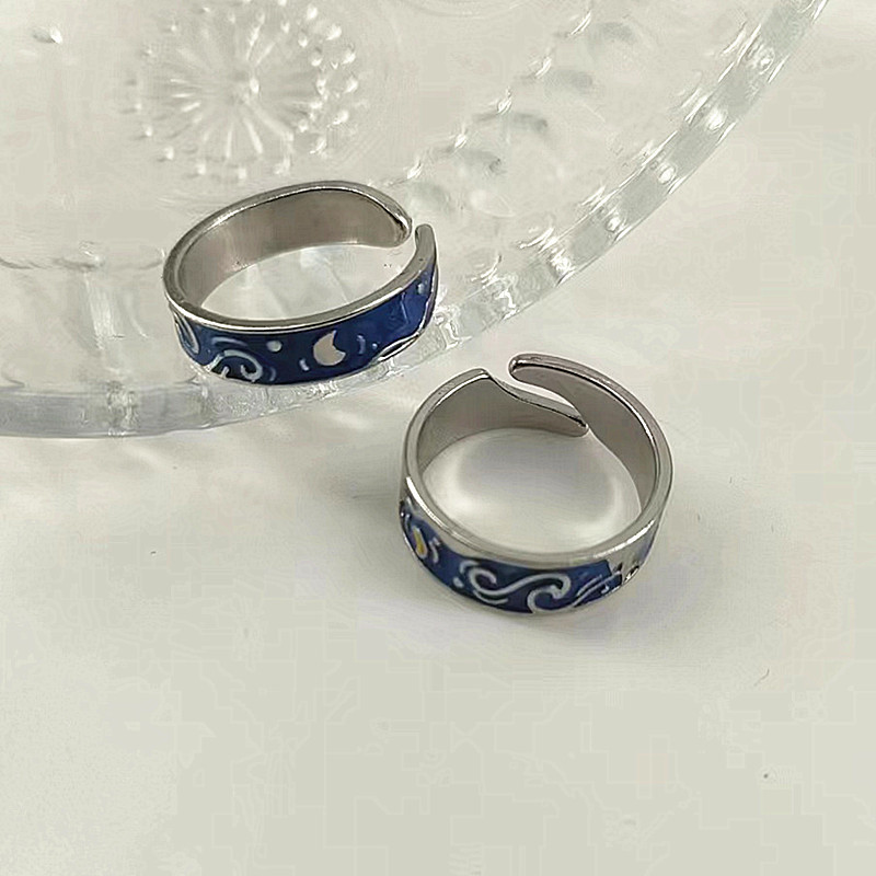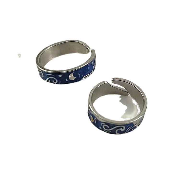 Simple and Fashionable Van Gogh Star Ring Korean Style Distinctive Couple's Ring Trendy Rings Exquisite Korean Opening Ring