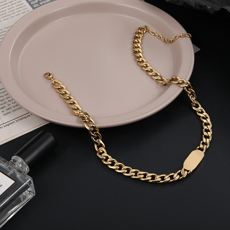 Stainless steel hip hop men's European and American style necklace trendy personalized rap street single chain thick chain short clavicle chain
