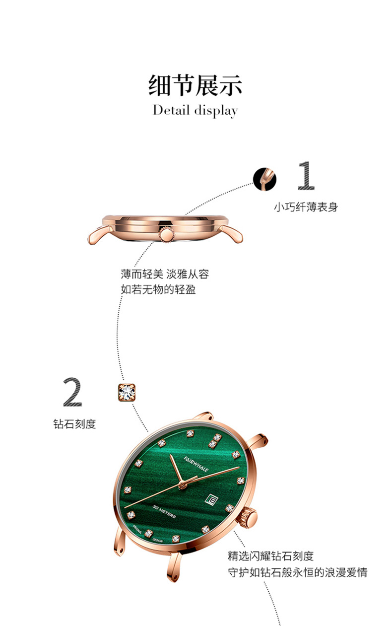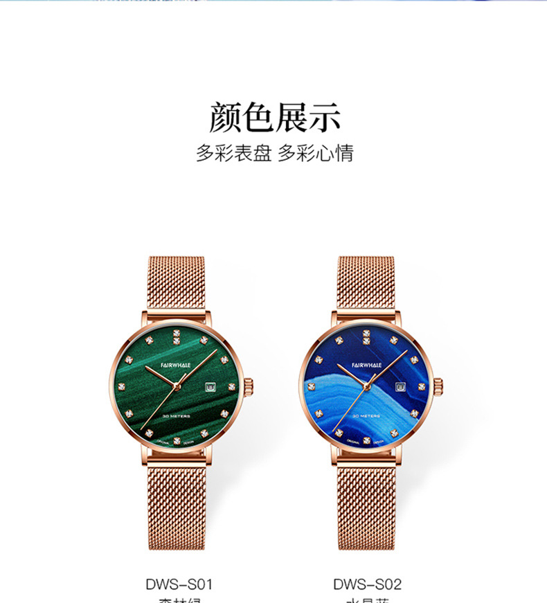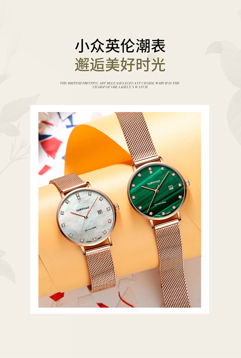 Mark Waffee Mark Fairwhale Watch Women's Small Green Watch Light Luxury Simple Elegant TikTok Explosive Luxury Watch