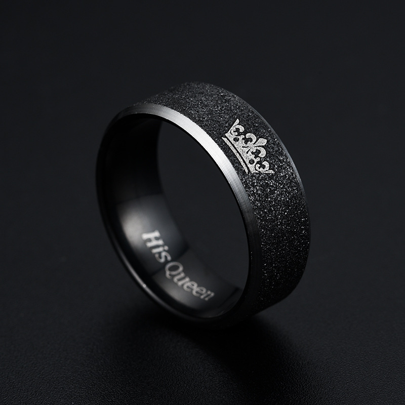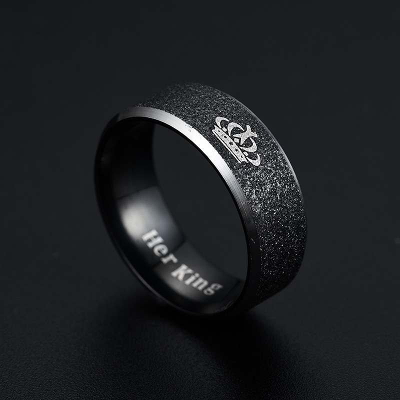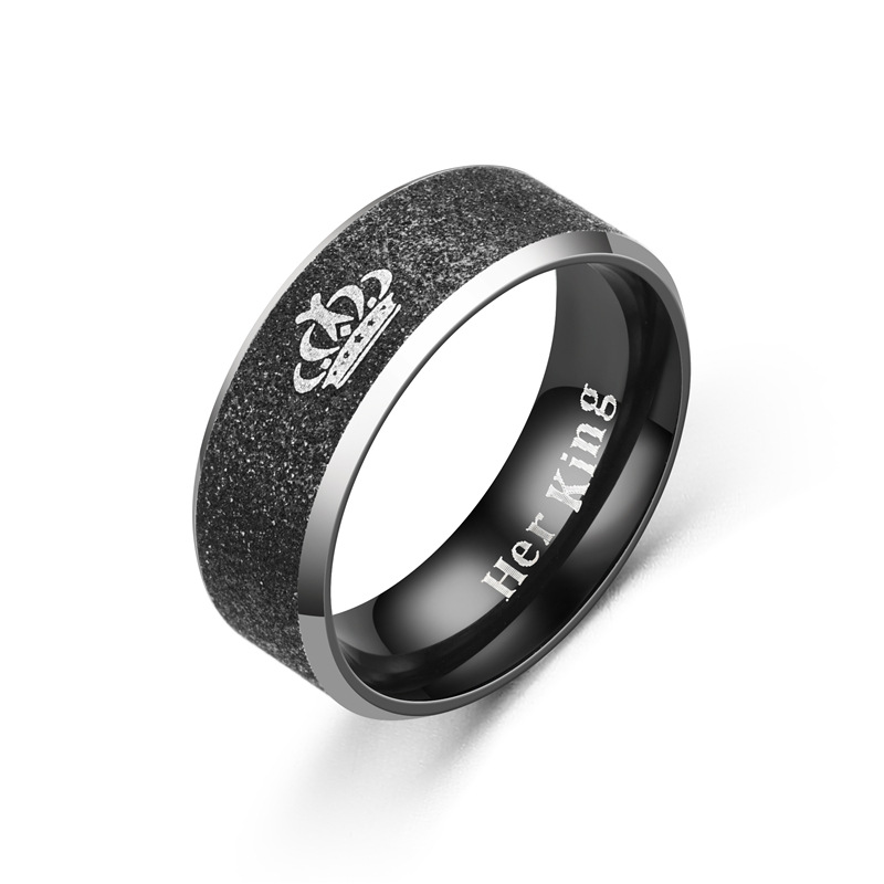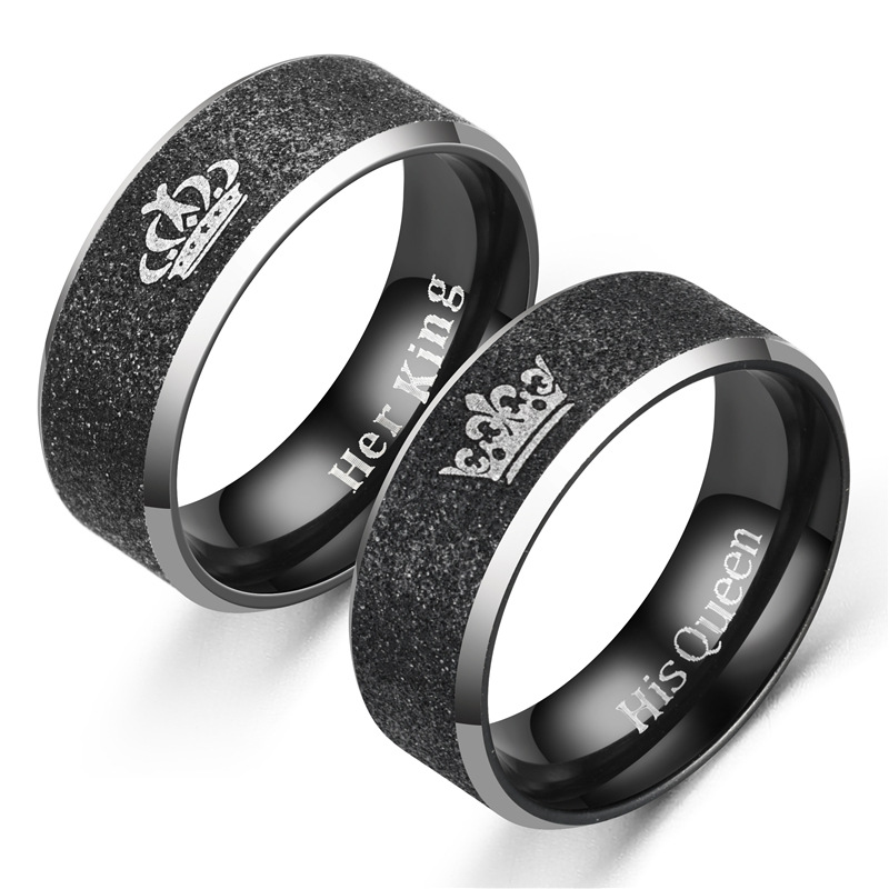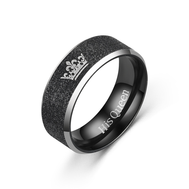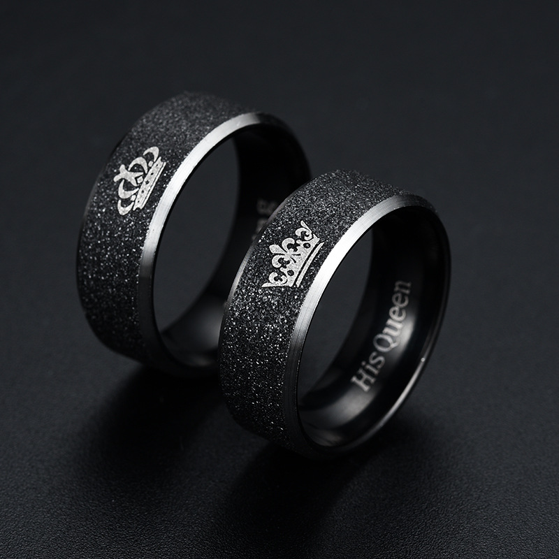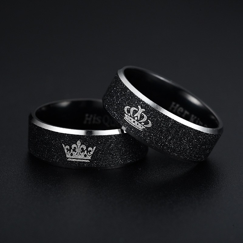 European and American fashion stainless steel Pearl sand Crown King Queen couple pair ring titanium steel ring