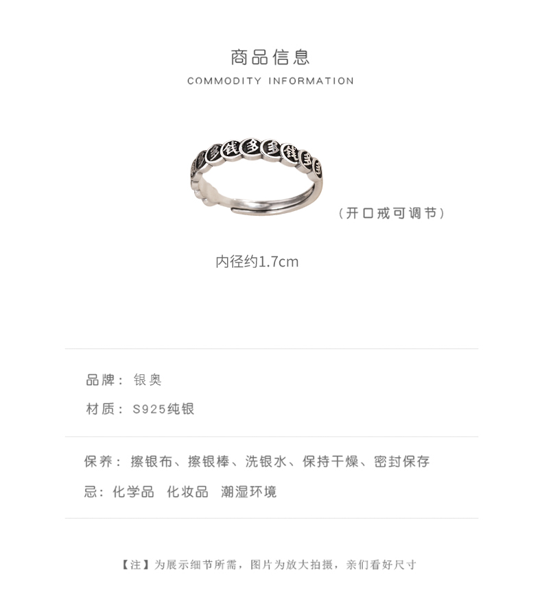 Color: 925 silver money ring [average size] [opening adjustable size]]
