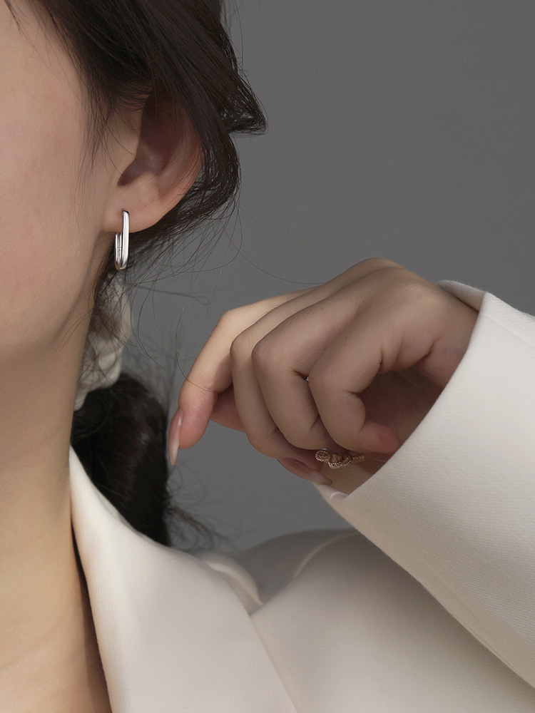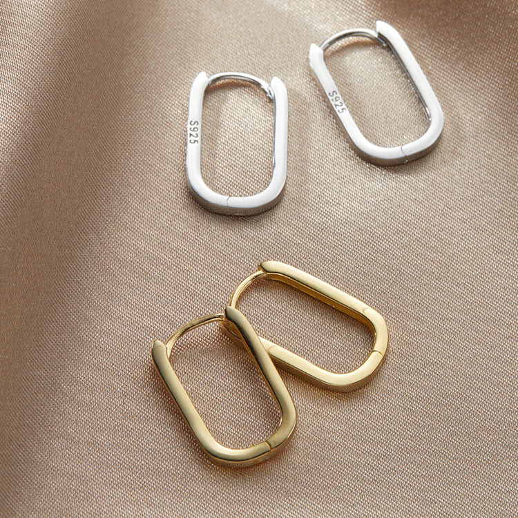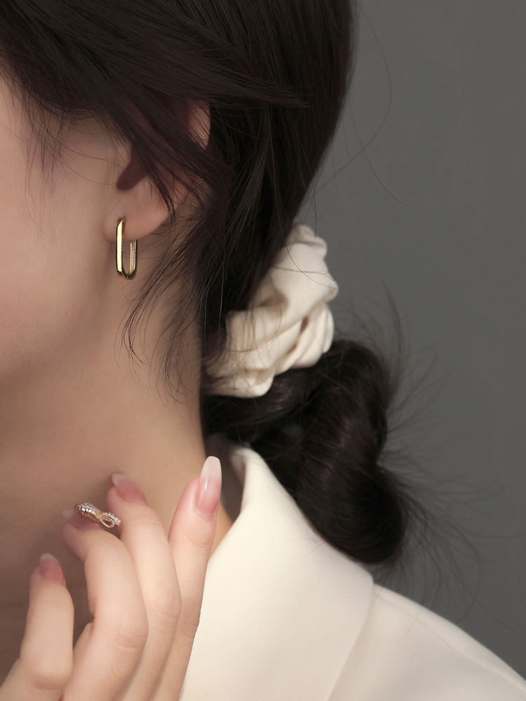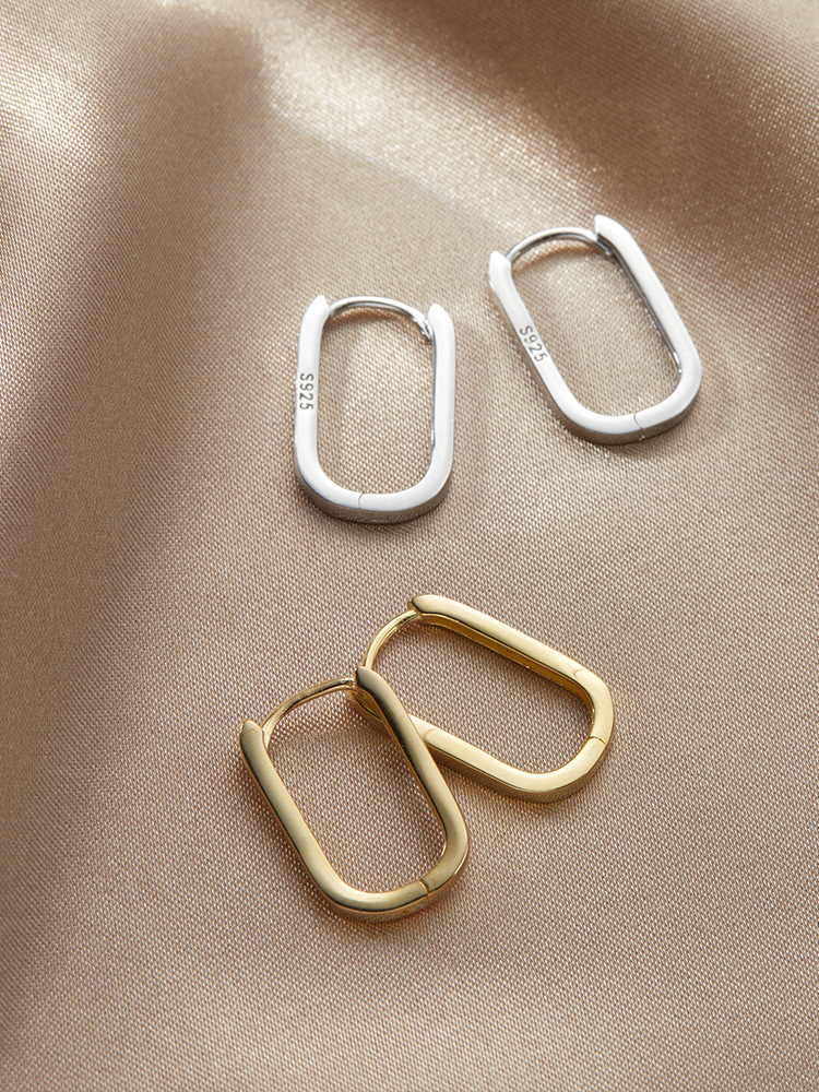 Silver Square Earrings with a Niche Design, Elegant and Sophisticated Women's Fashion Hoop Earrings, New Trendy Earrings for 2025