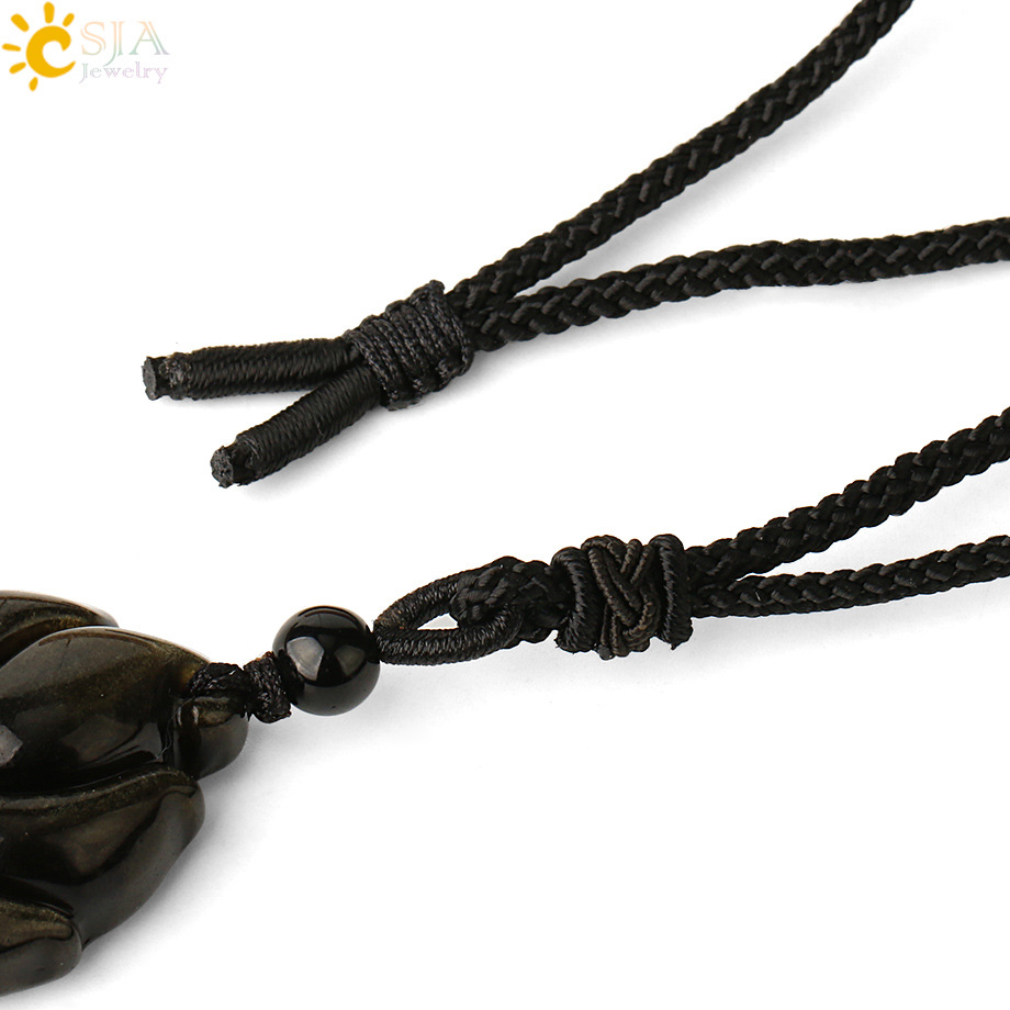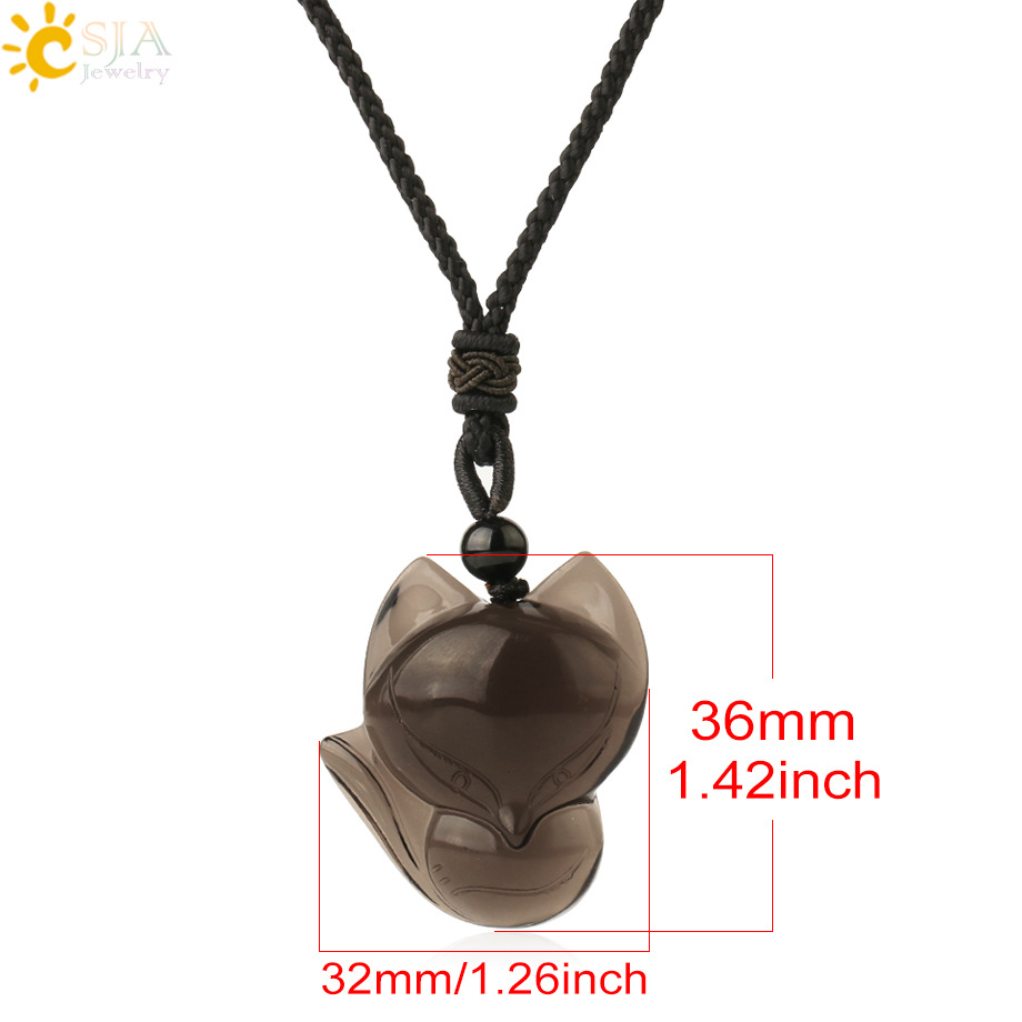 天然石头吊坠黑曜石黑玛瑙印度玛瑙项链动物狐狸吊坠可调节项饰