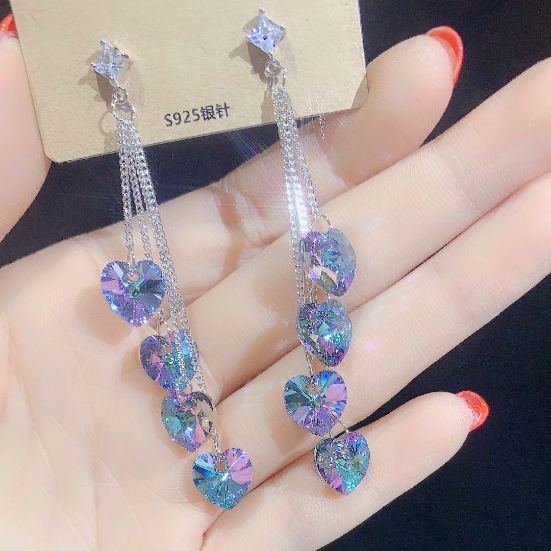 Artificial Crystal Tassel Silver Needle Earrings for Women, Korean Style Earrings, Elegant Tassel Earrings, Electroplated Tassel Earrings