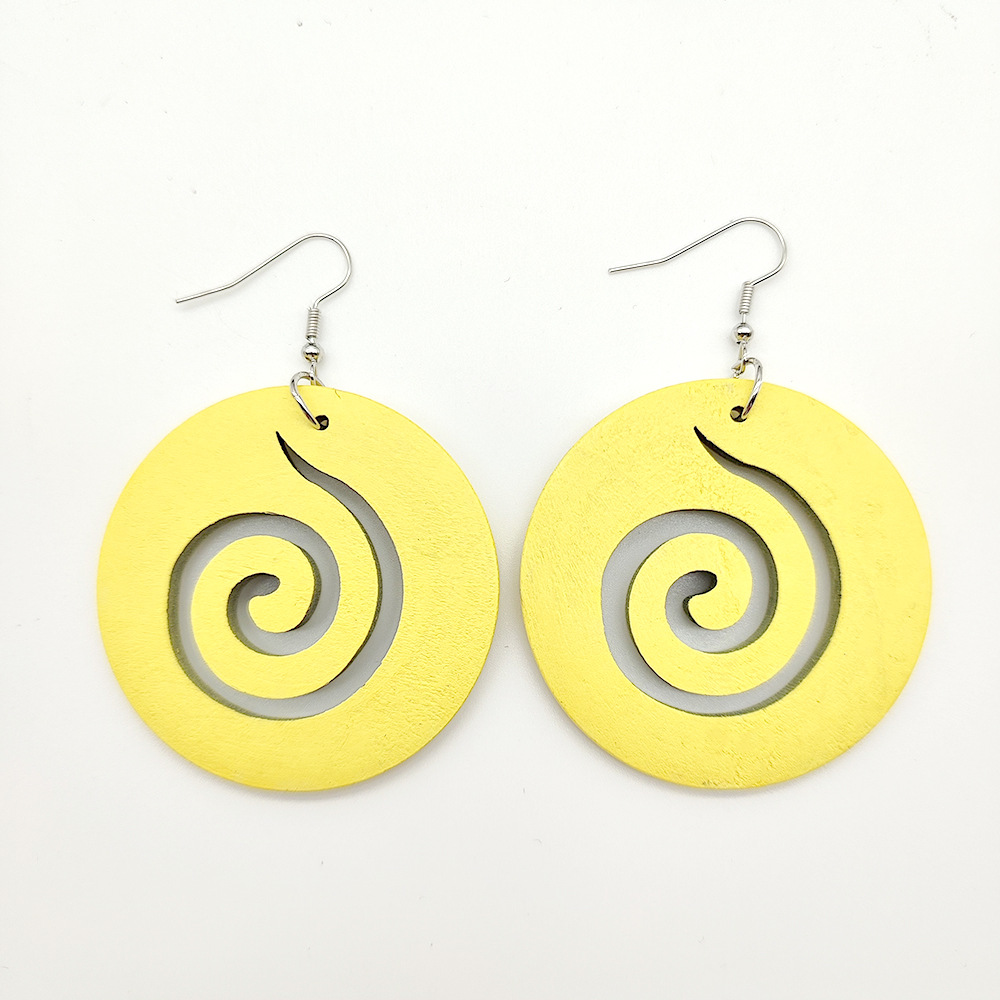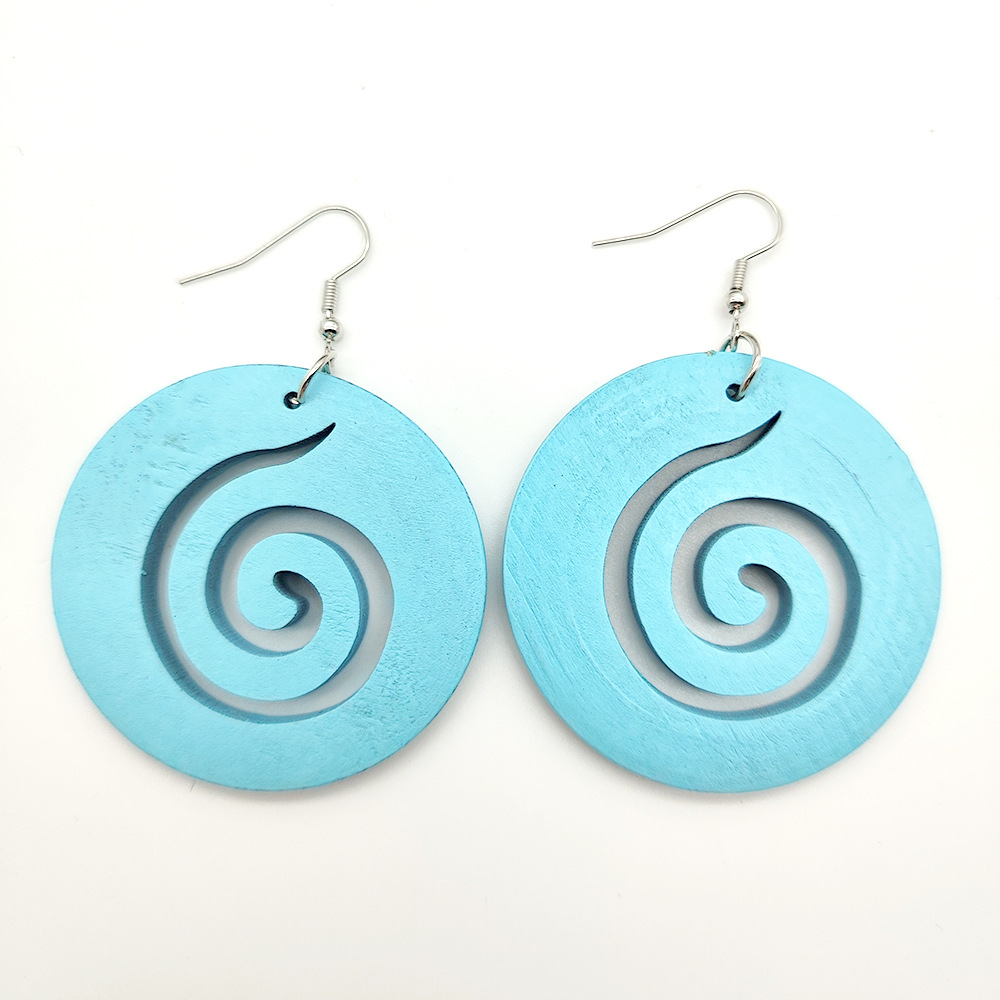 European and American New Round Face Slimming Earrings Japanese and Korean Creative Hollow Wood Earrings Earrings Cross-border Small Jewelry