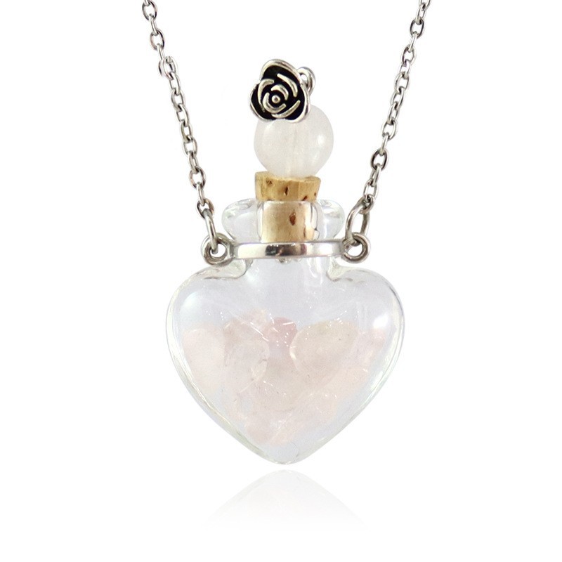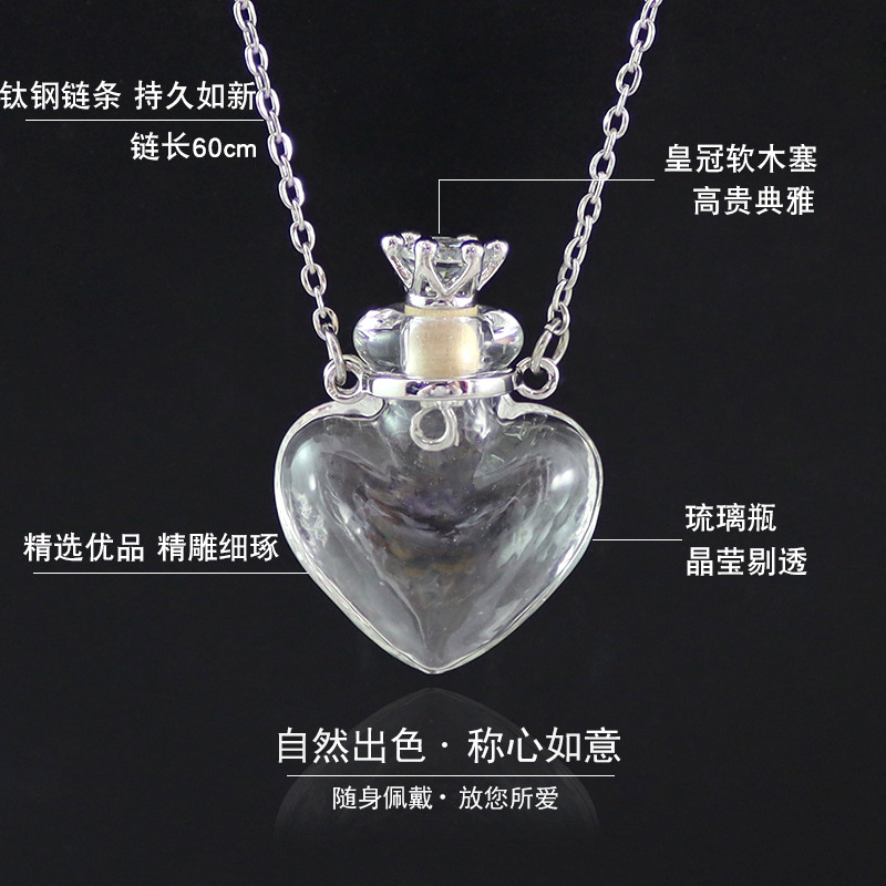 Features: Amazon Transparent Heart-Shaped Glaze Pendant Perfume Oil Bottle Necklace Carry-on Aromatherapy Wishing Jewelry Pendant