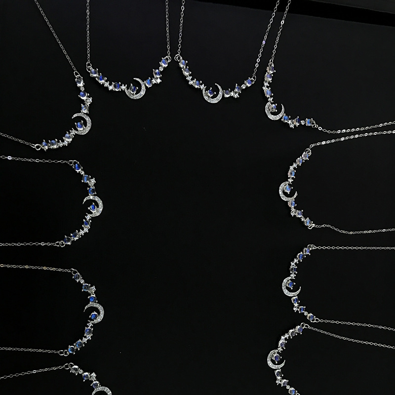 亲爱的伙伴你们好,蓝月光是我们工厂生产的品种,这款蓝月光镶嵌925银七星伴月项链,主石尺寸约是3mm左右的,是10条起批的,如需要大于20条或者少量拿样,可以联系客服,价格可调,图片为实物拍摄,由于灯光以及拍摄角度的问题,存在一定色差,想要观看更多图片跟视频可以联系我们客服,我们有专门的客服人员给您对接,方便您采购到满意的产品。