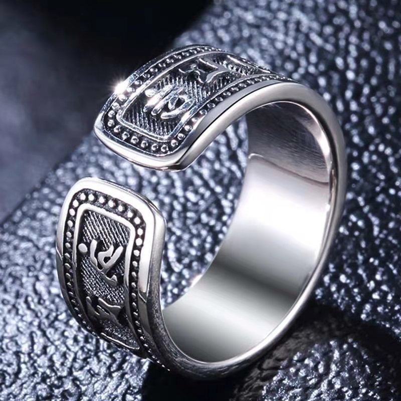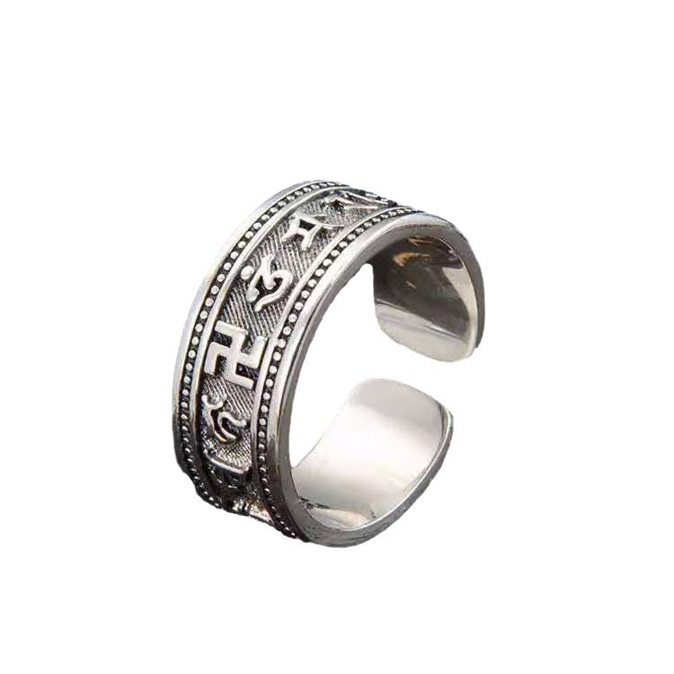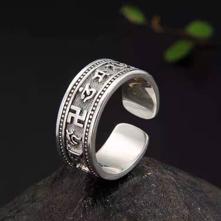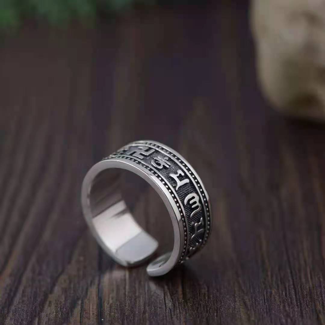 Six-character mantra sterling silver S925 Heart Sutra ring six-character men's and women's silver opening couple's ring domineering postage