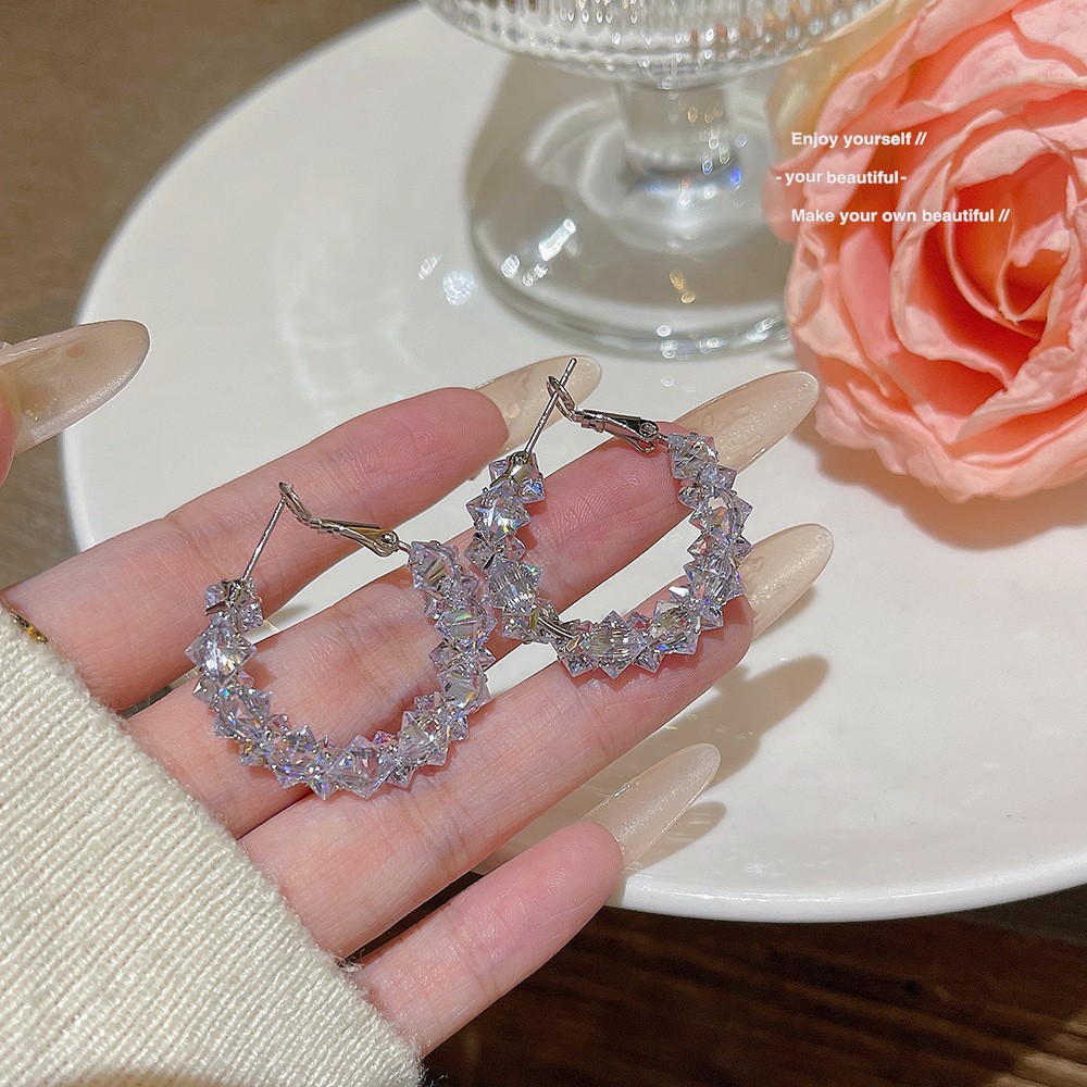 925 silver needle exaggerated hoop earrings European and American temperament zircon earring jewelry niche high-end cross-border earrings for women