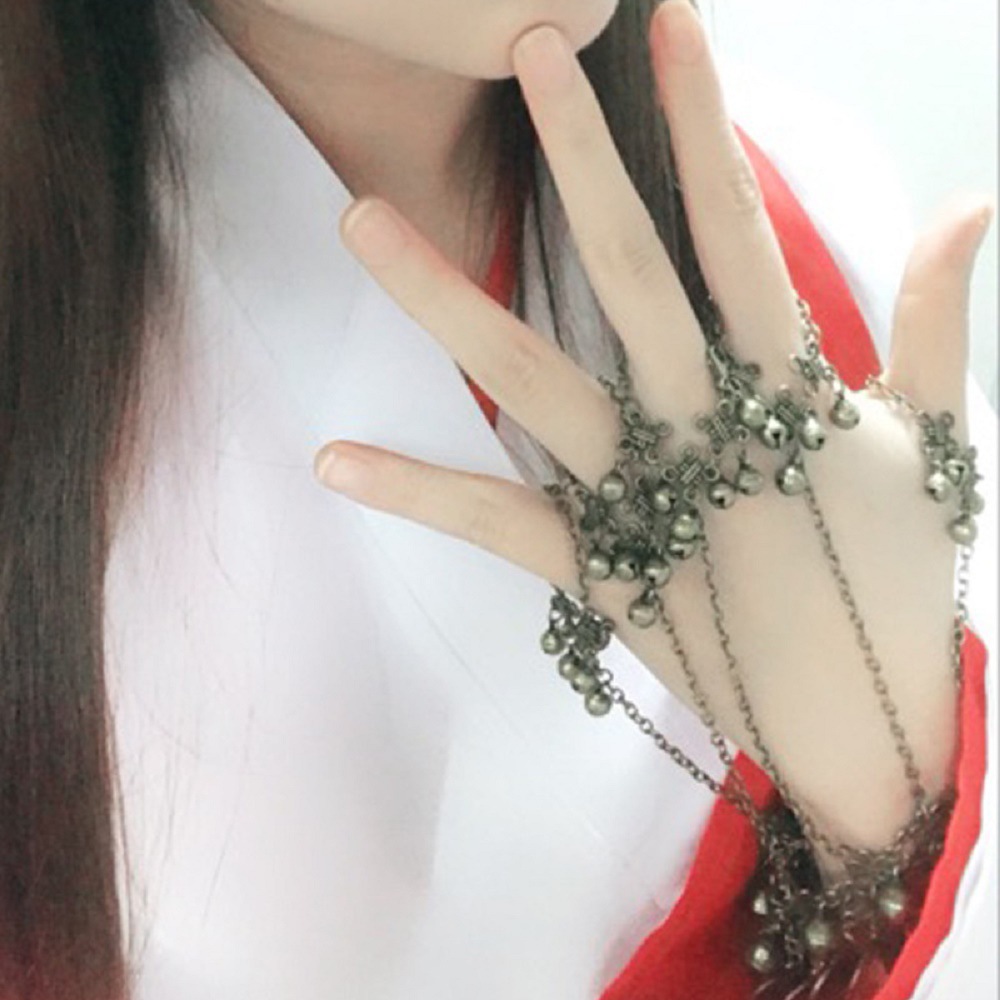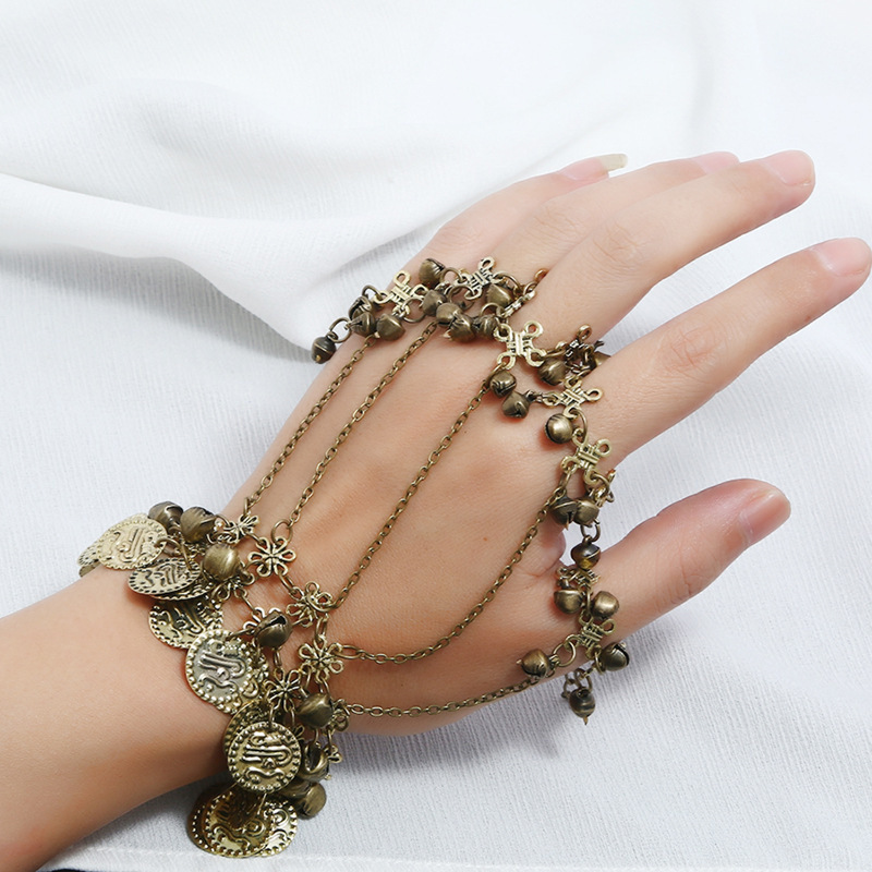 大话西游紫霞仙子同款手工采耳朱茵复古钱币五指连指流苏铃铛手链