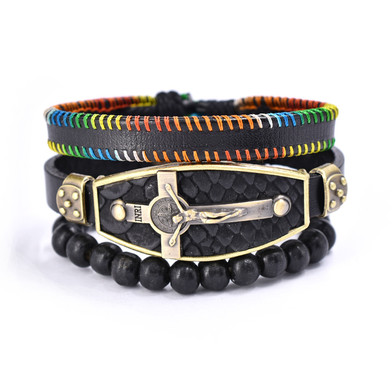 Main material: Zinc alloy, leather, cotton wax line, iron buckle, leather, wooden beads, elastic rope