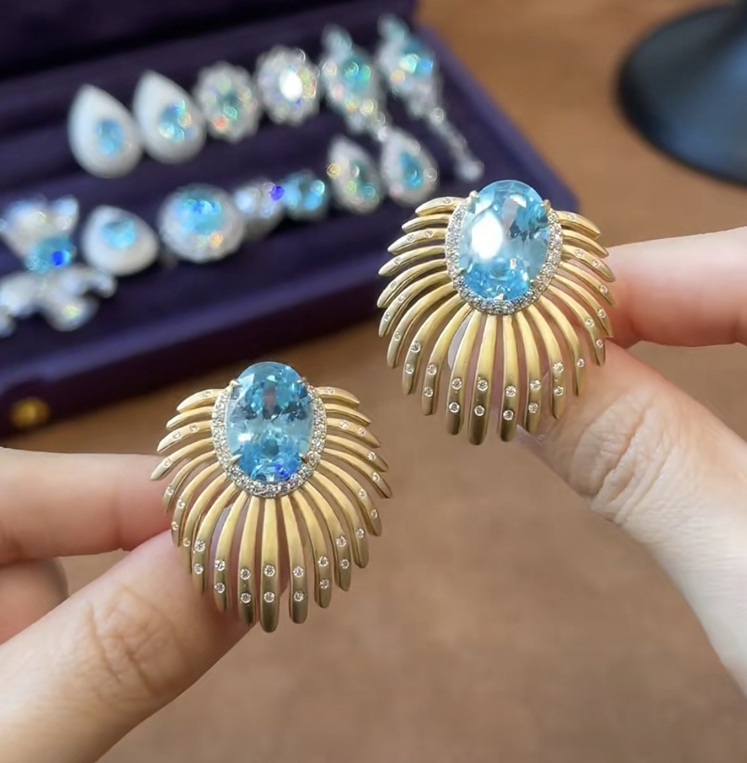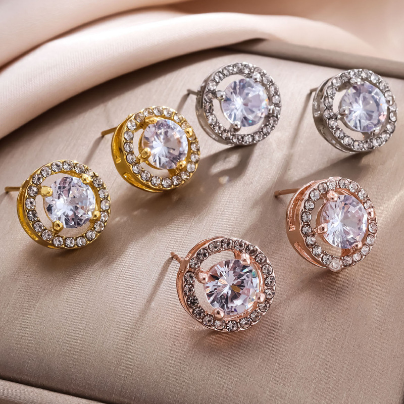 Color: Blue diamond stud earrings-gold-copper