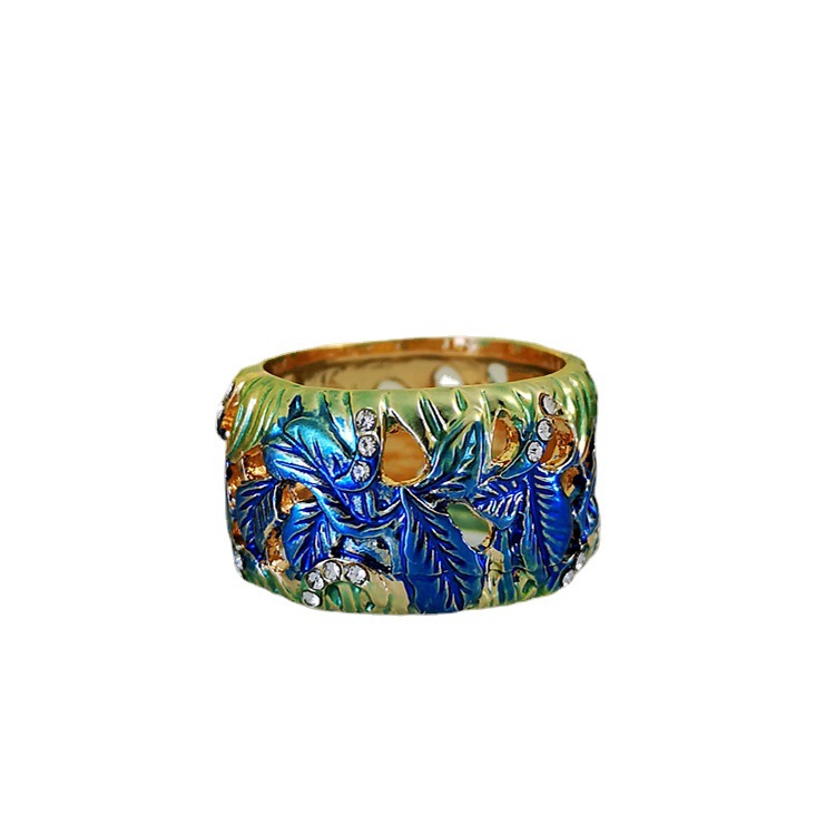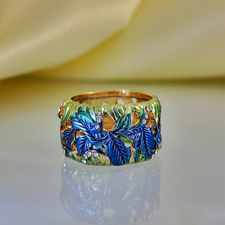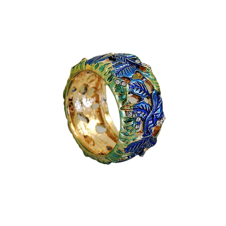 Meiyu jewelry art style painted leaves cloisonne ring European and American fashion craftsman enamel personality ring