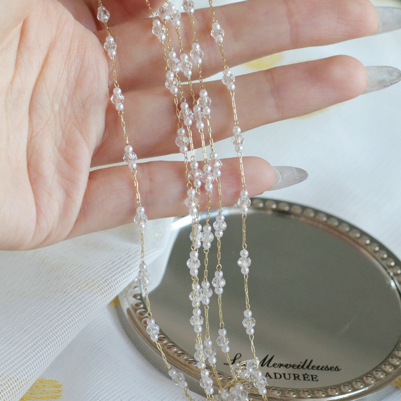 规格:仿珍珠2mm的,人造水晶3mm,链条直径1.3mm