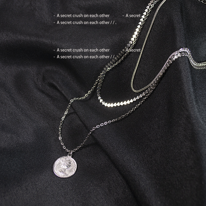 Folded Disc Clavicle Chain Women's ins Light Luxury Niche Design Hip Hop Pendant Cold Style Sweater Necklace Accessories