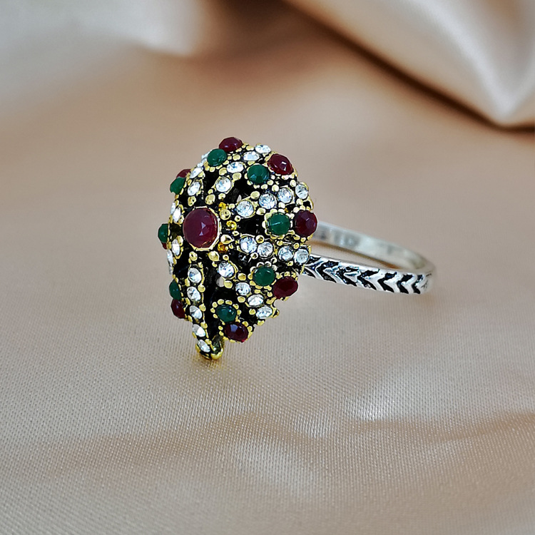 Meiyu jewelry craftsman made antique Turkish Ruby Diamond women's ring European and American cross-border retro ring