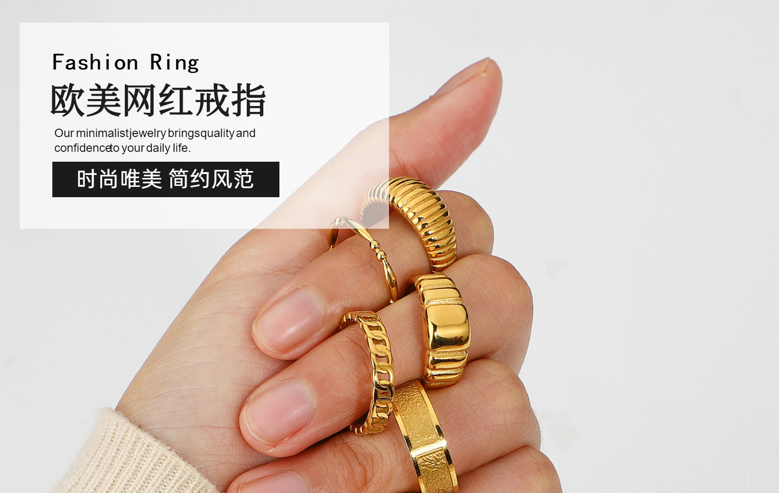 Jiding European and American Stainless Steel Gold Ring Horn High-End Ins Titanium Steel Non-Fading Jewelry Women's Ring Jewelry