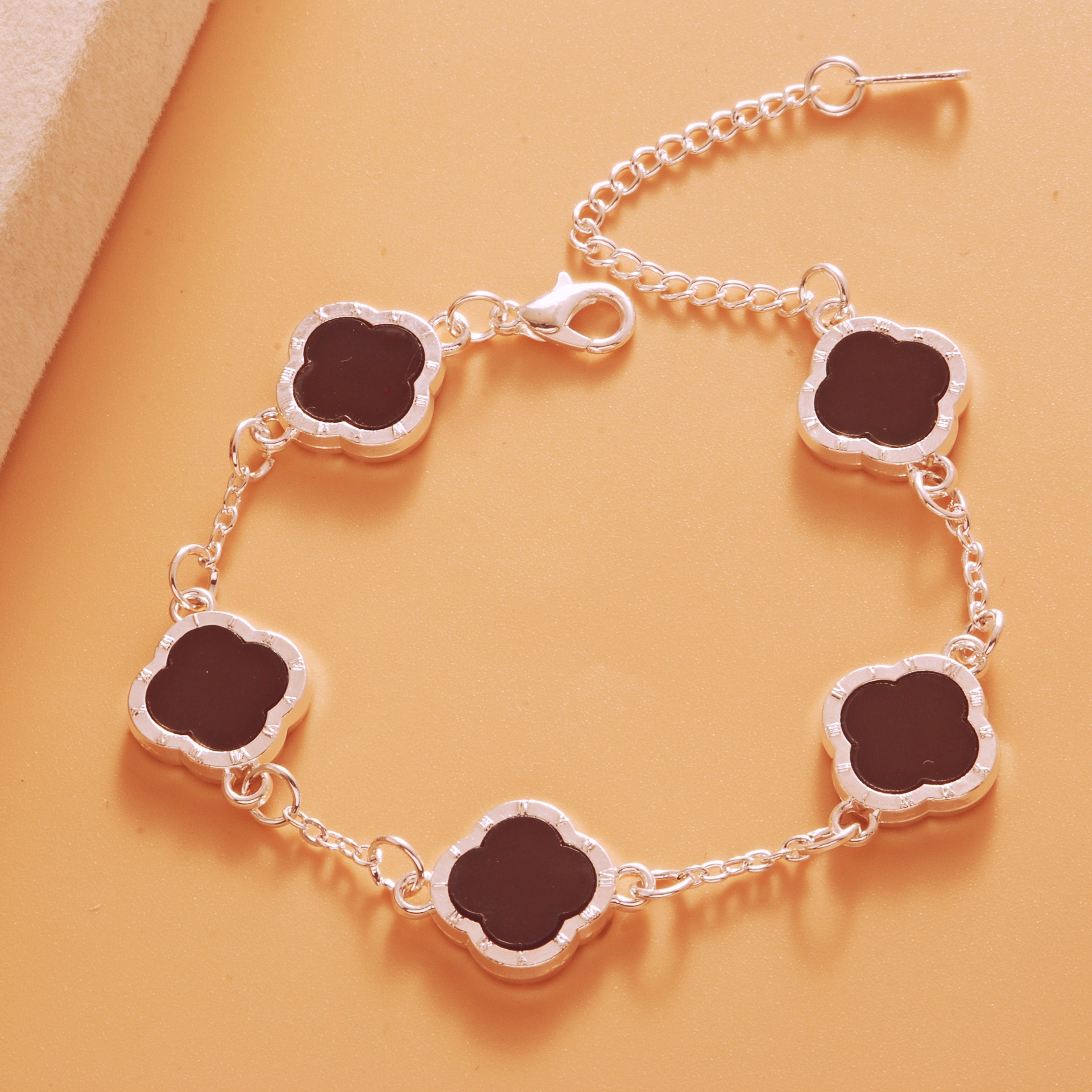 Color: Roman bright silver black five-leaf bracelet