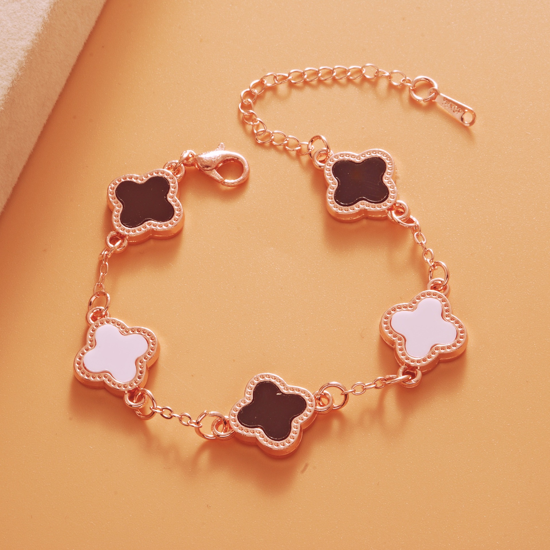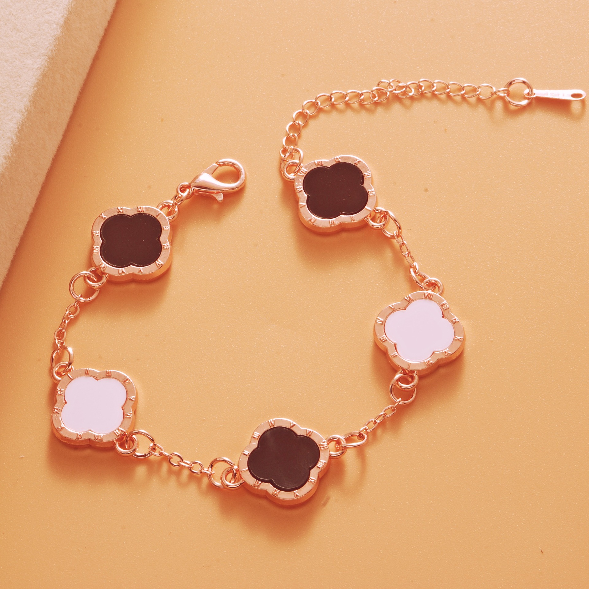 Color: Roman rose gold black and white five-leaf bracelet