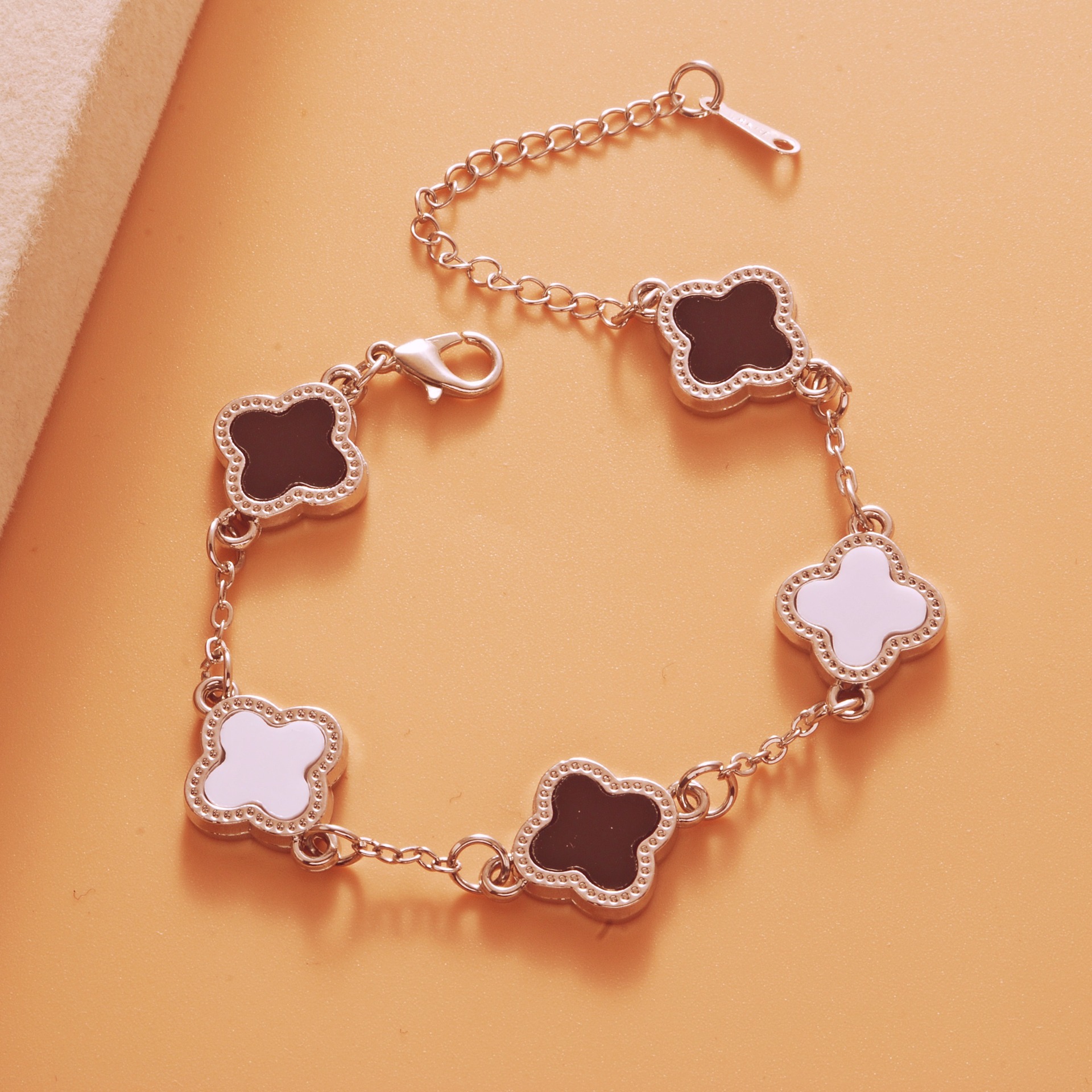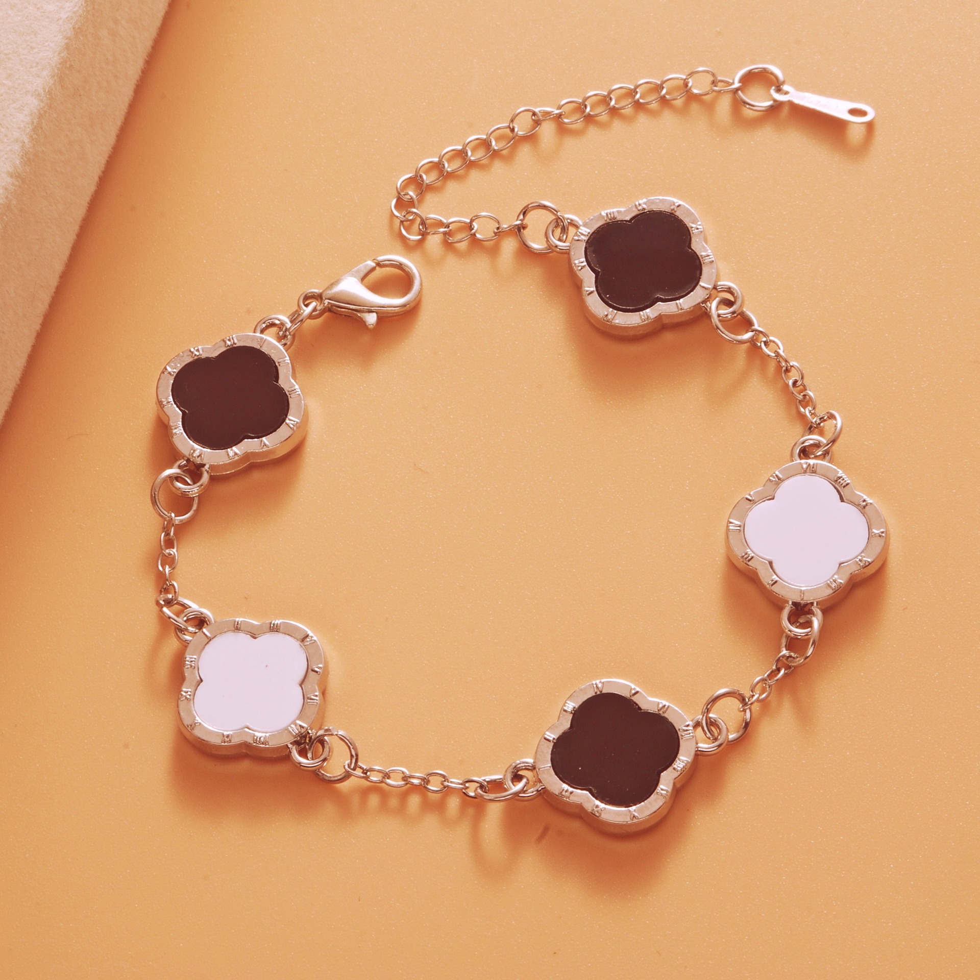 Color: Roman bright silver black and white five-leaf bracelet