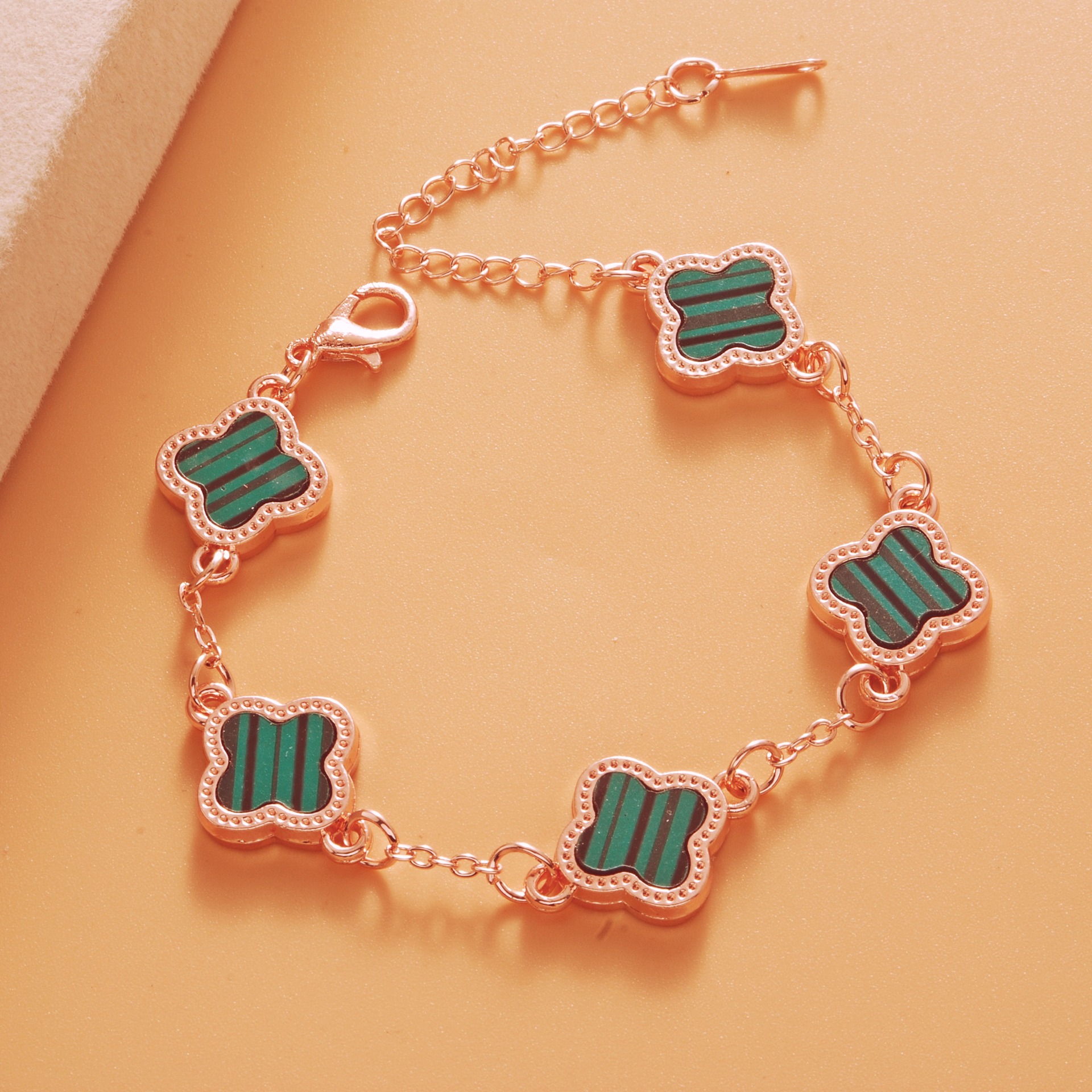 Color: Rose gold green five-leaf bracelet