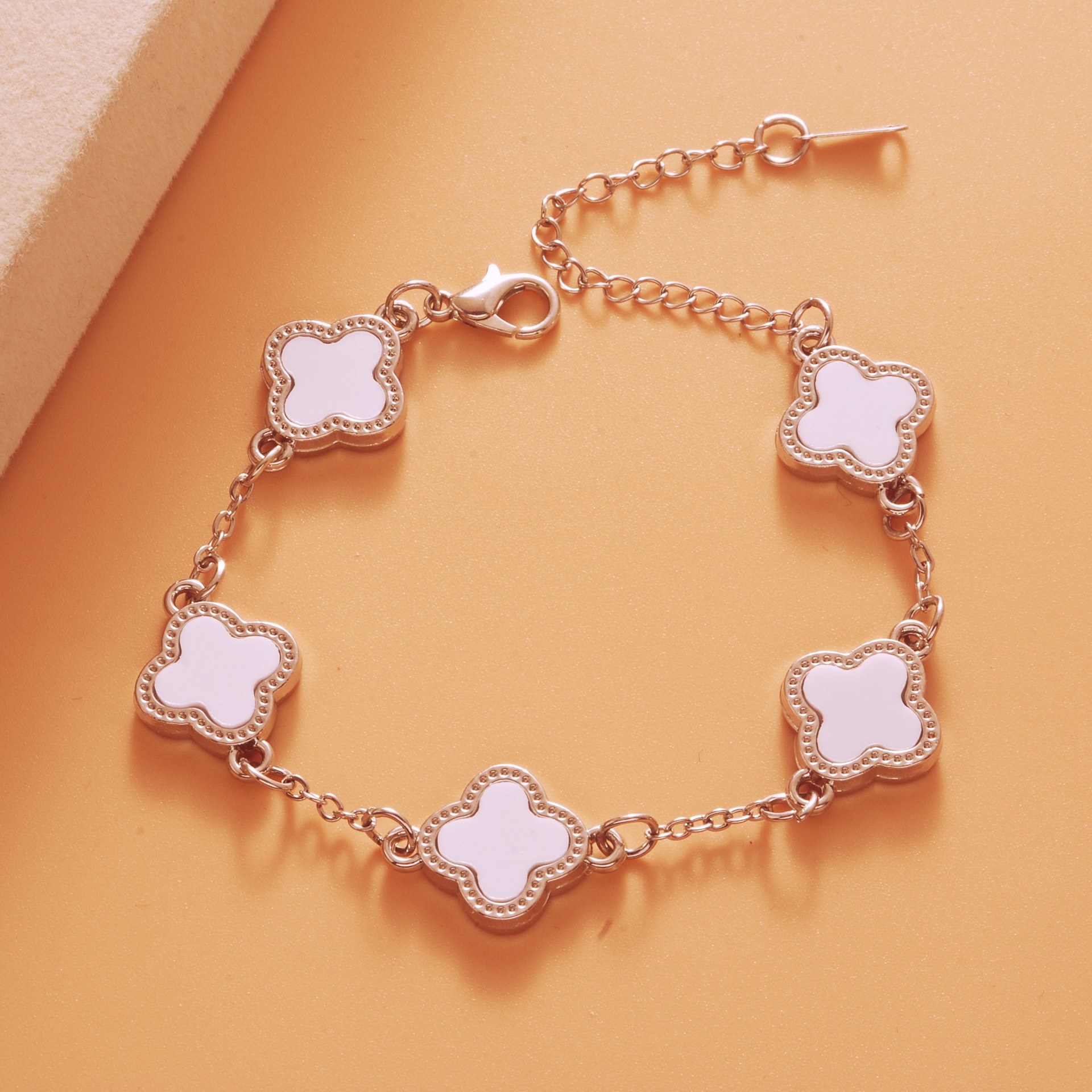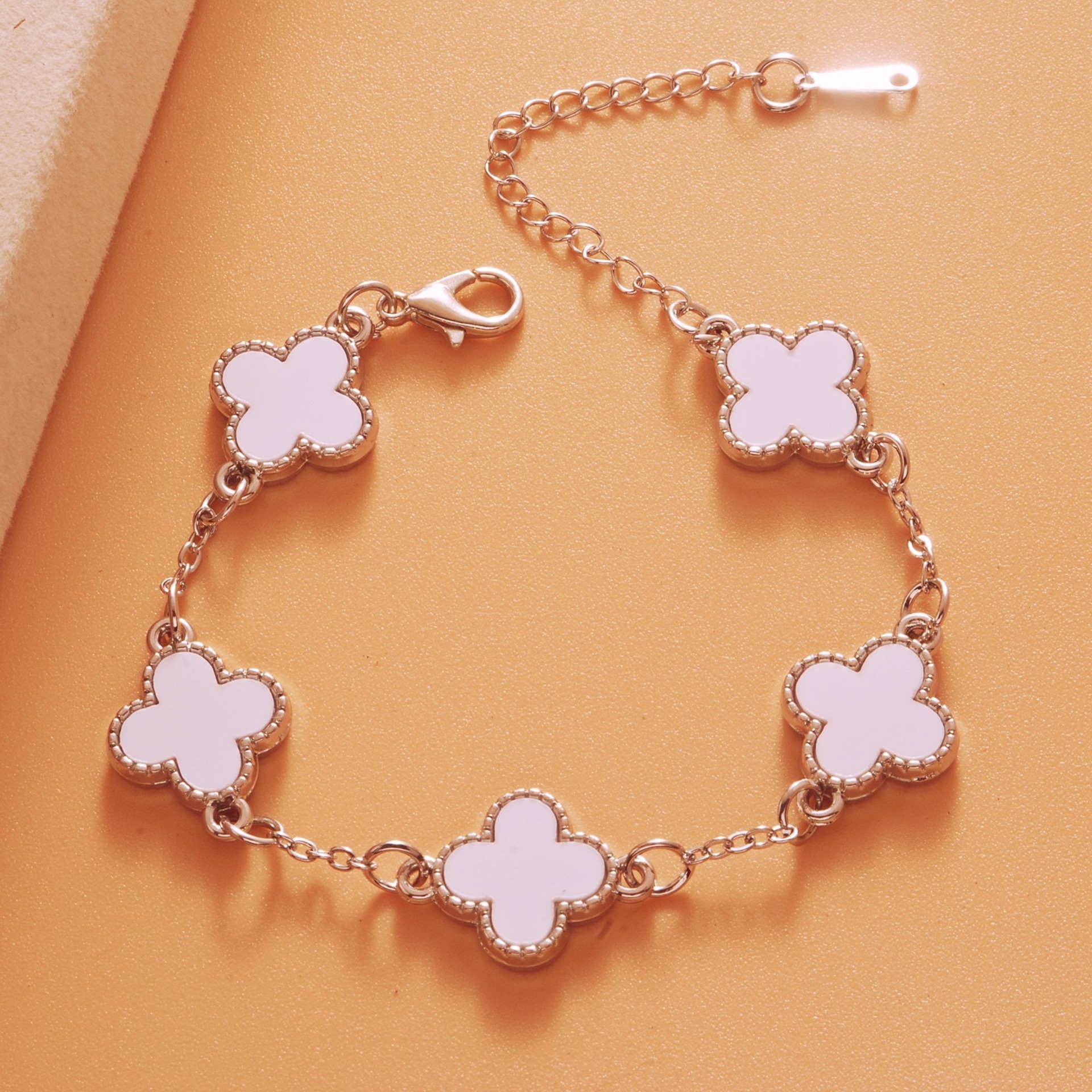 Color: Bright silver white five-leaf bracelet