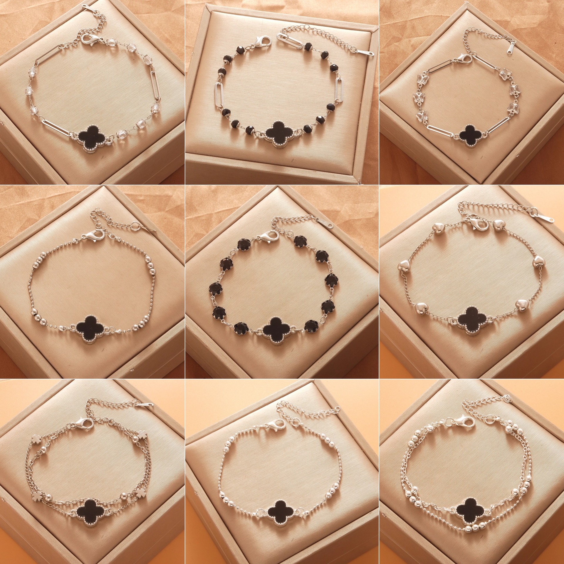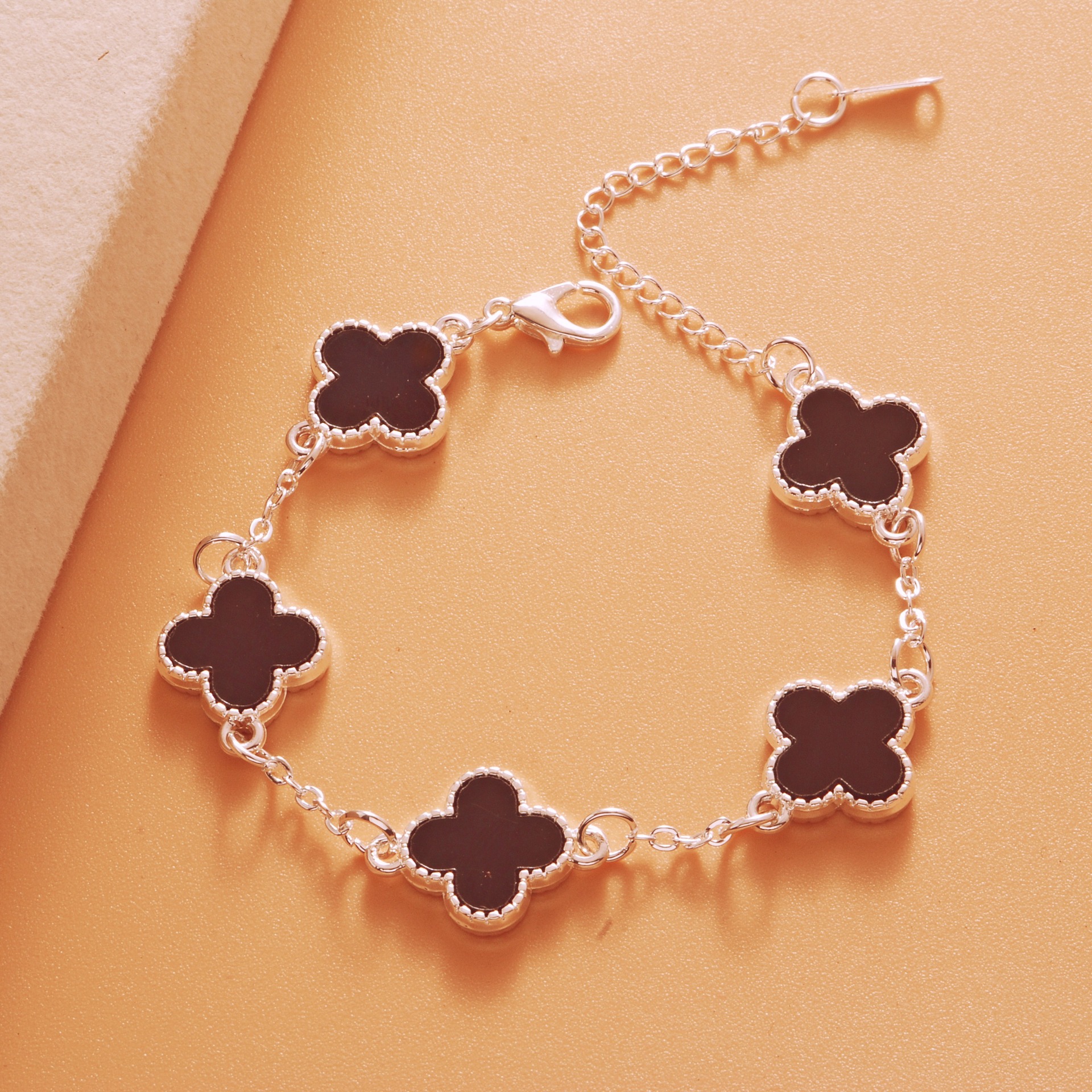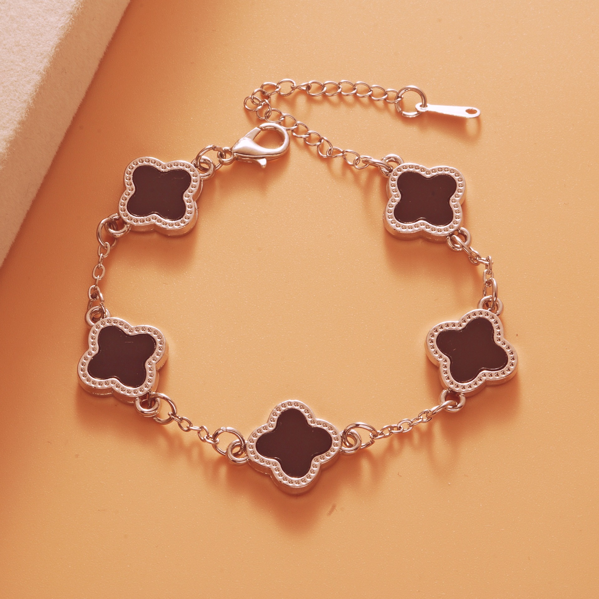 Color: Bright silver black five-leaf bracelet
