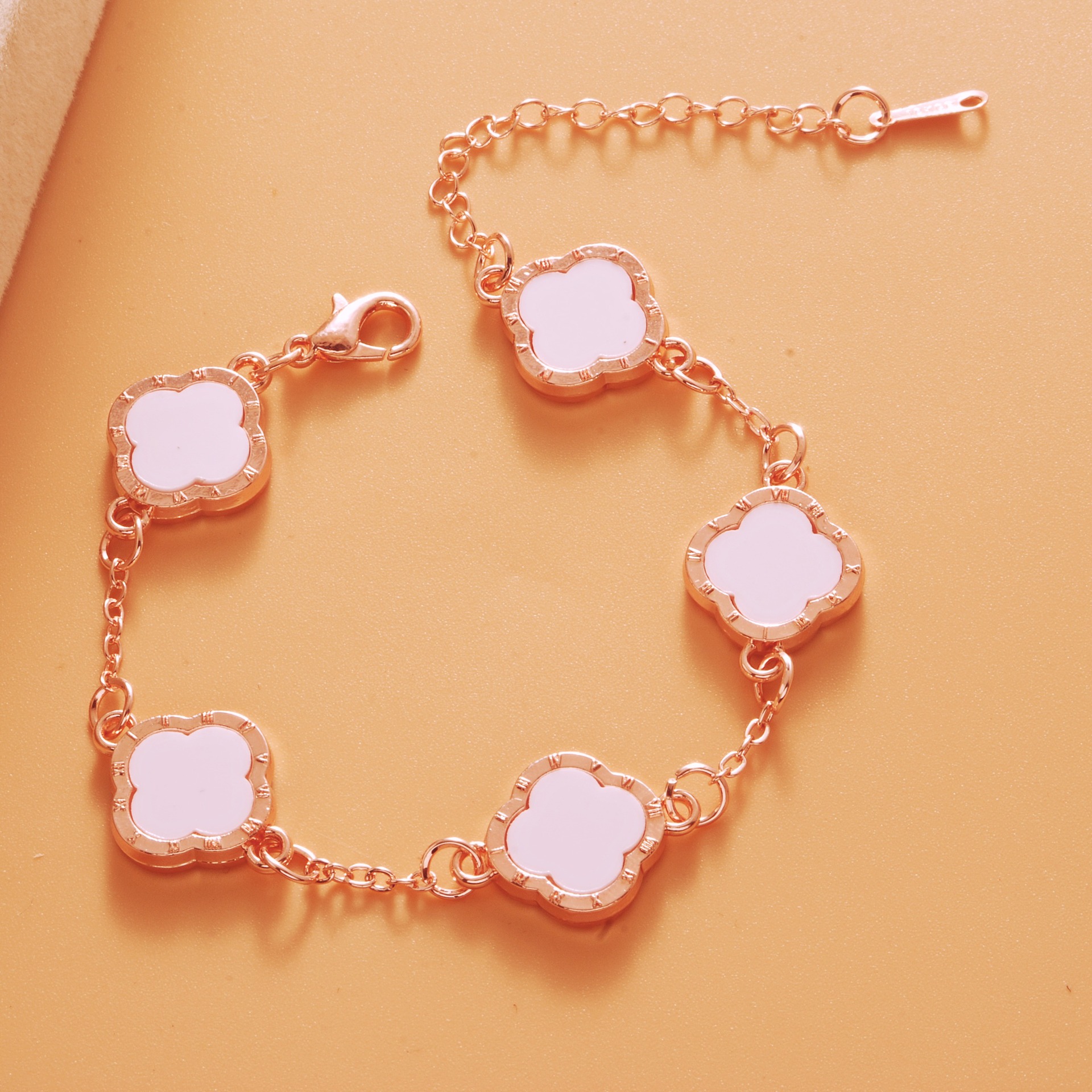 Color: Roman rose gold white five-leaf bracelet