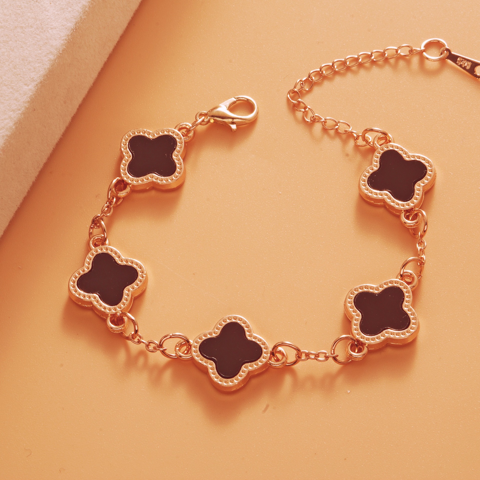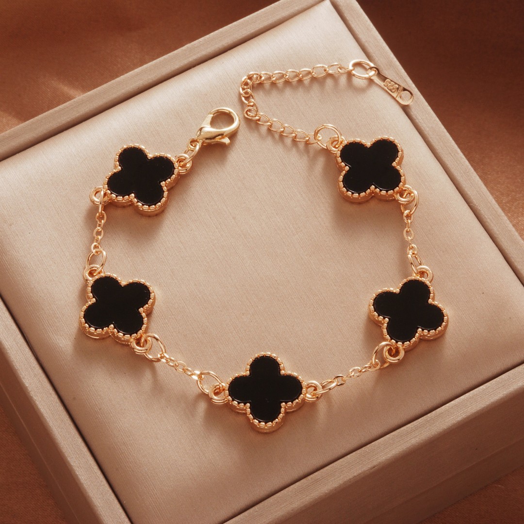 Color: Rose gold black five-leaf bracelet