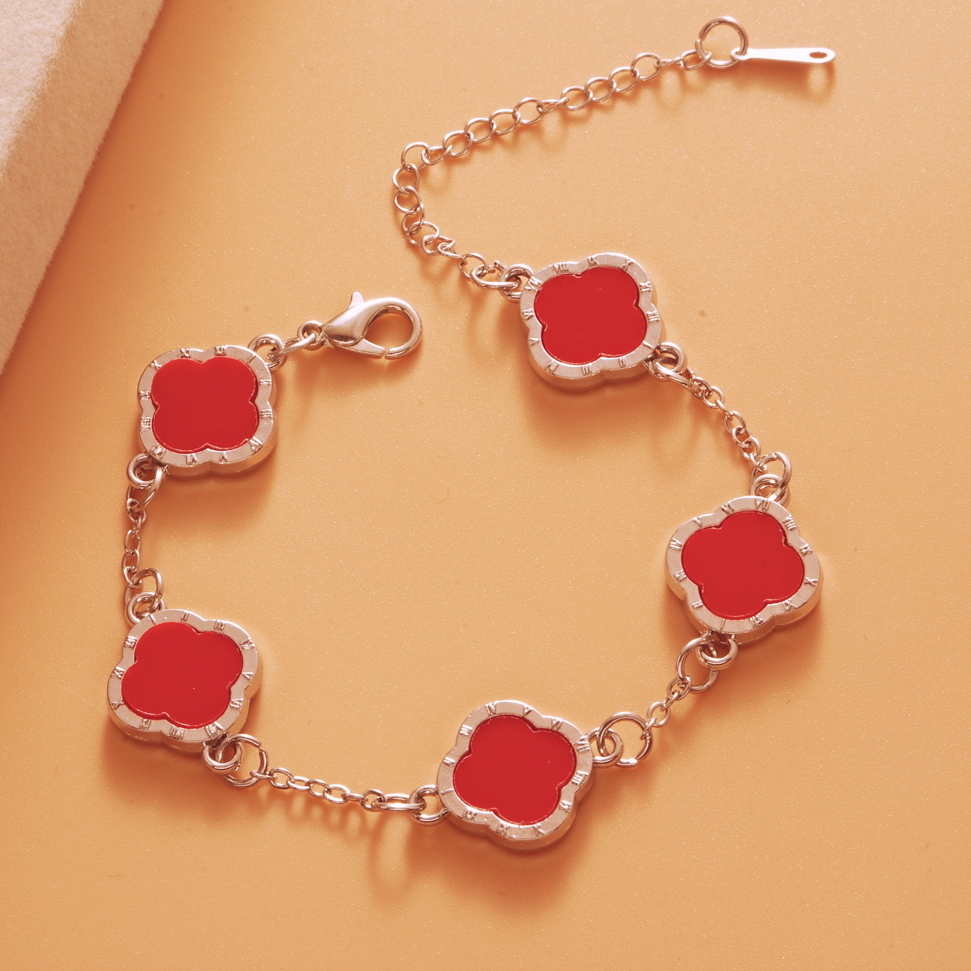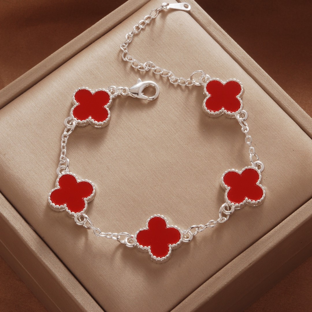 Color: Roman bright silver red five-leaf bracelet