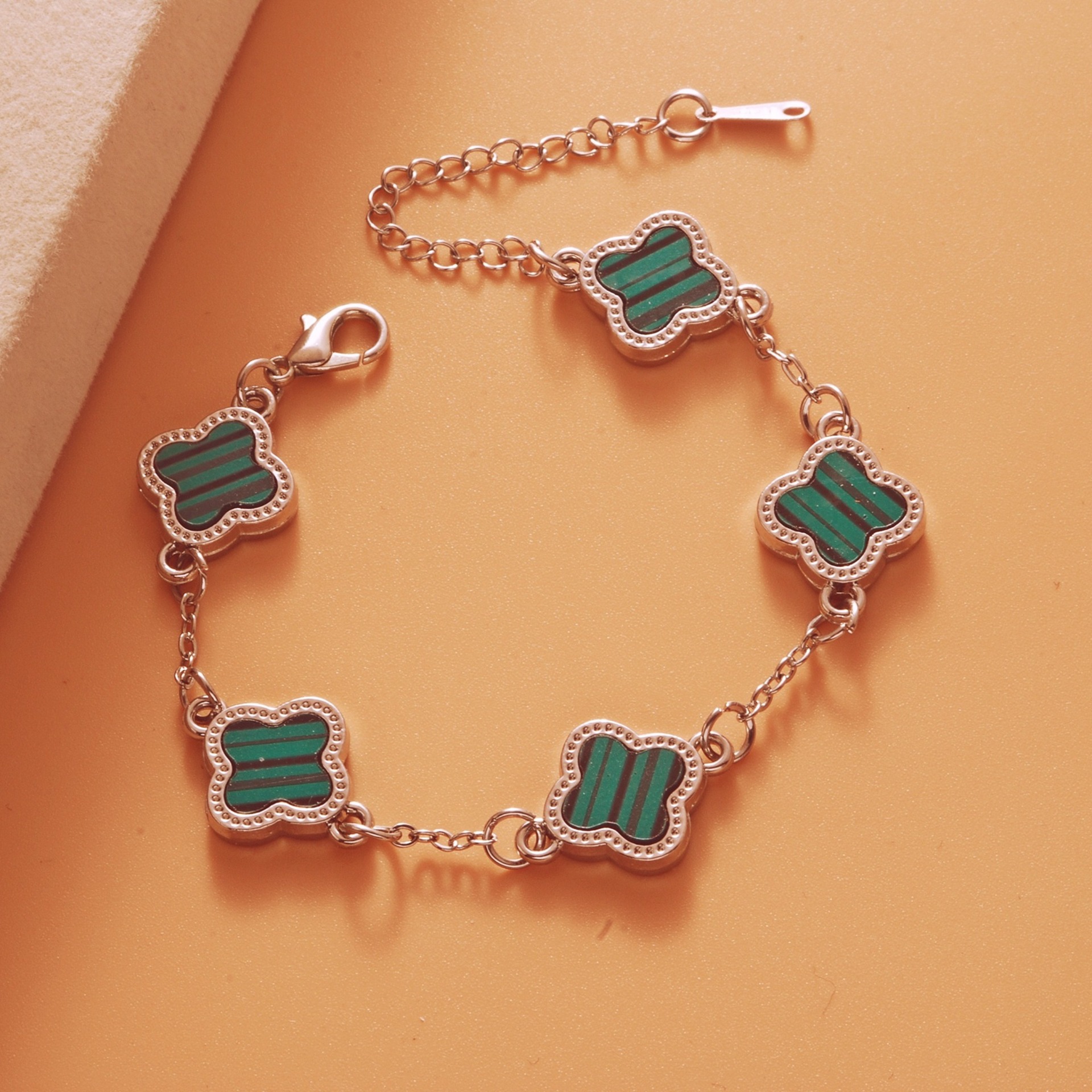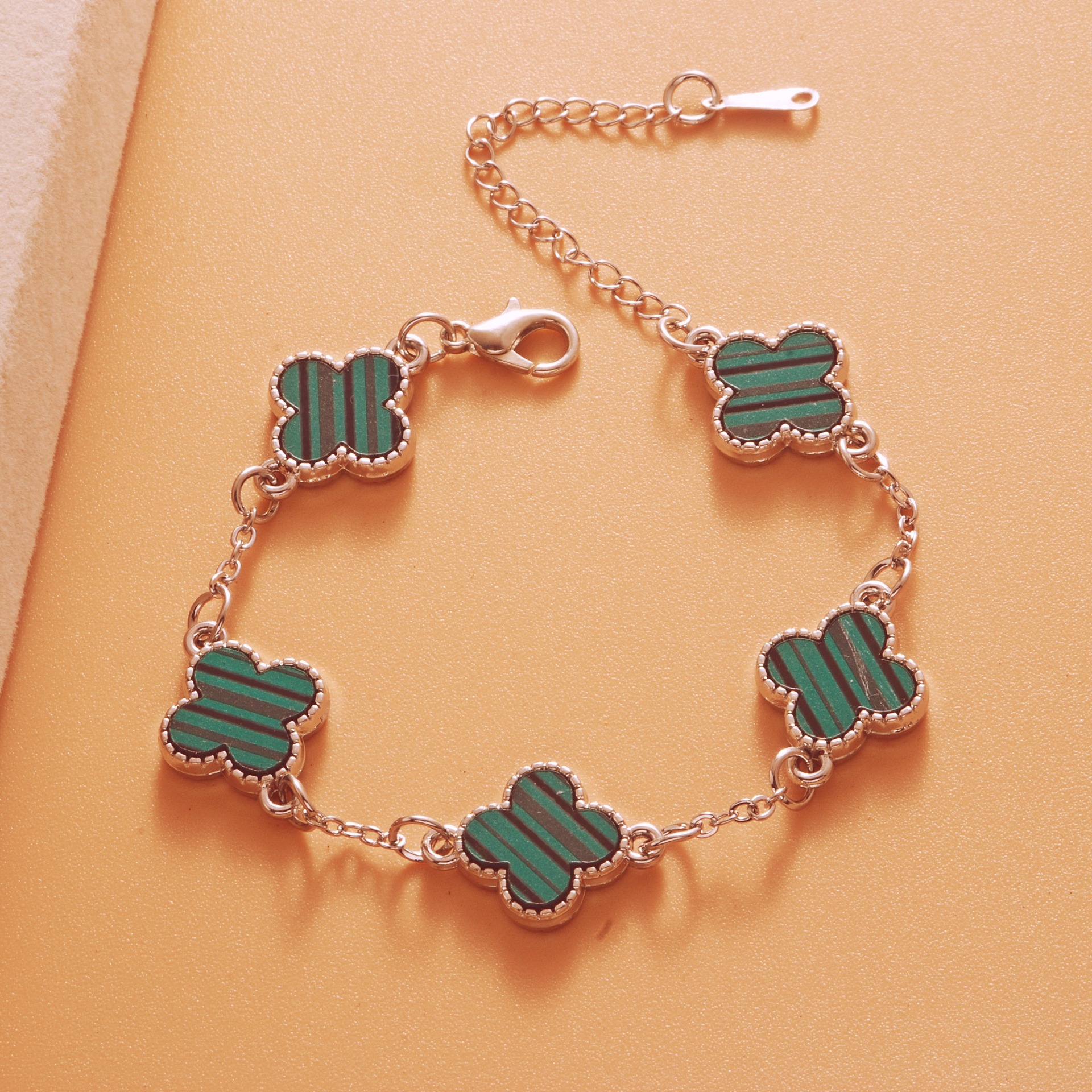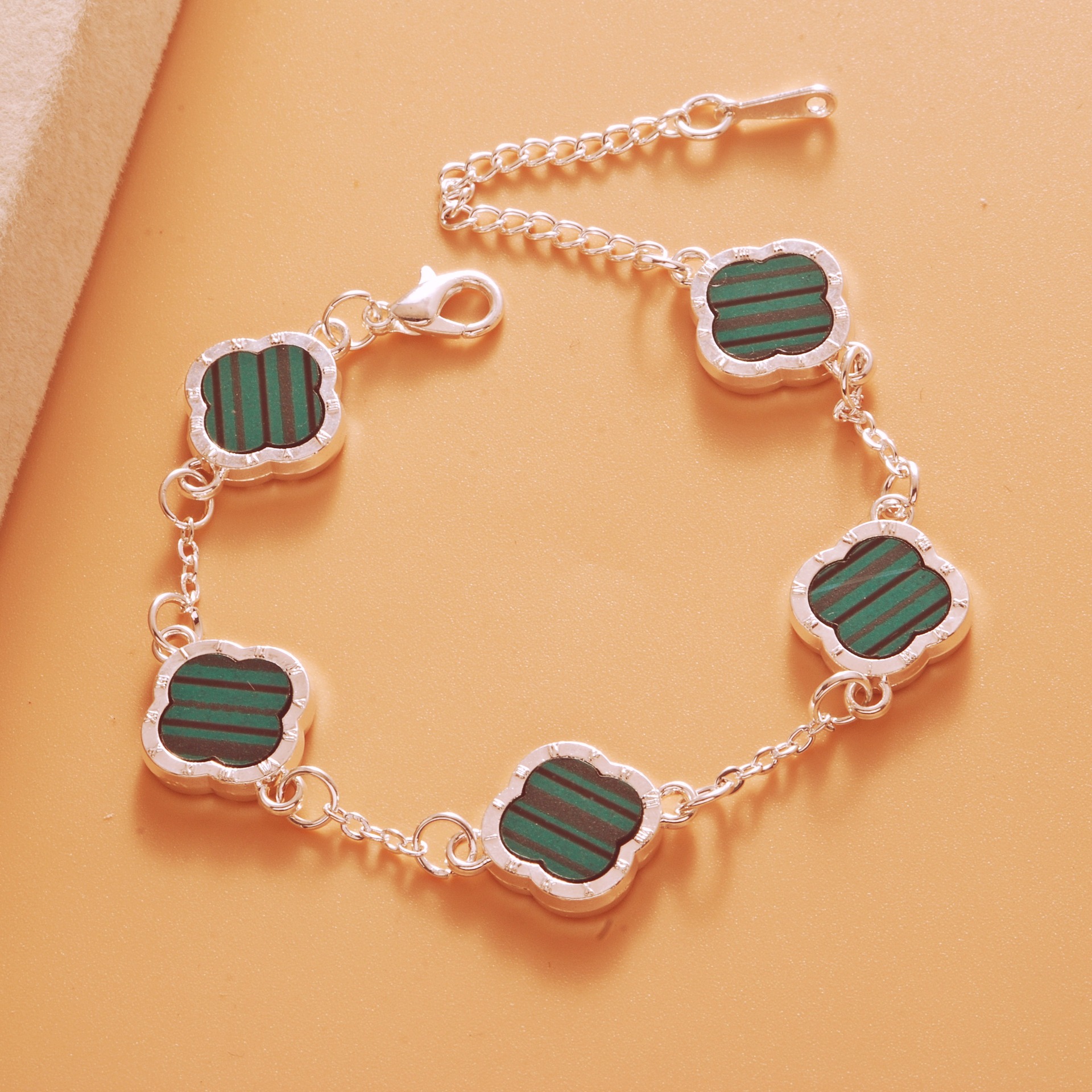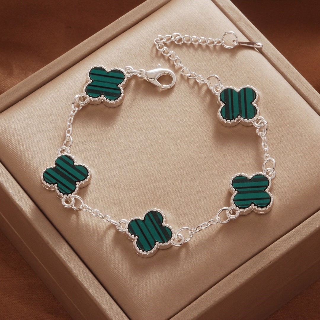 Color: Roman bright silver green five-leaf bracelet