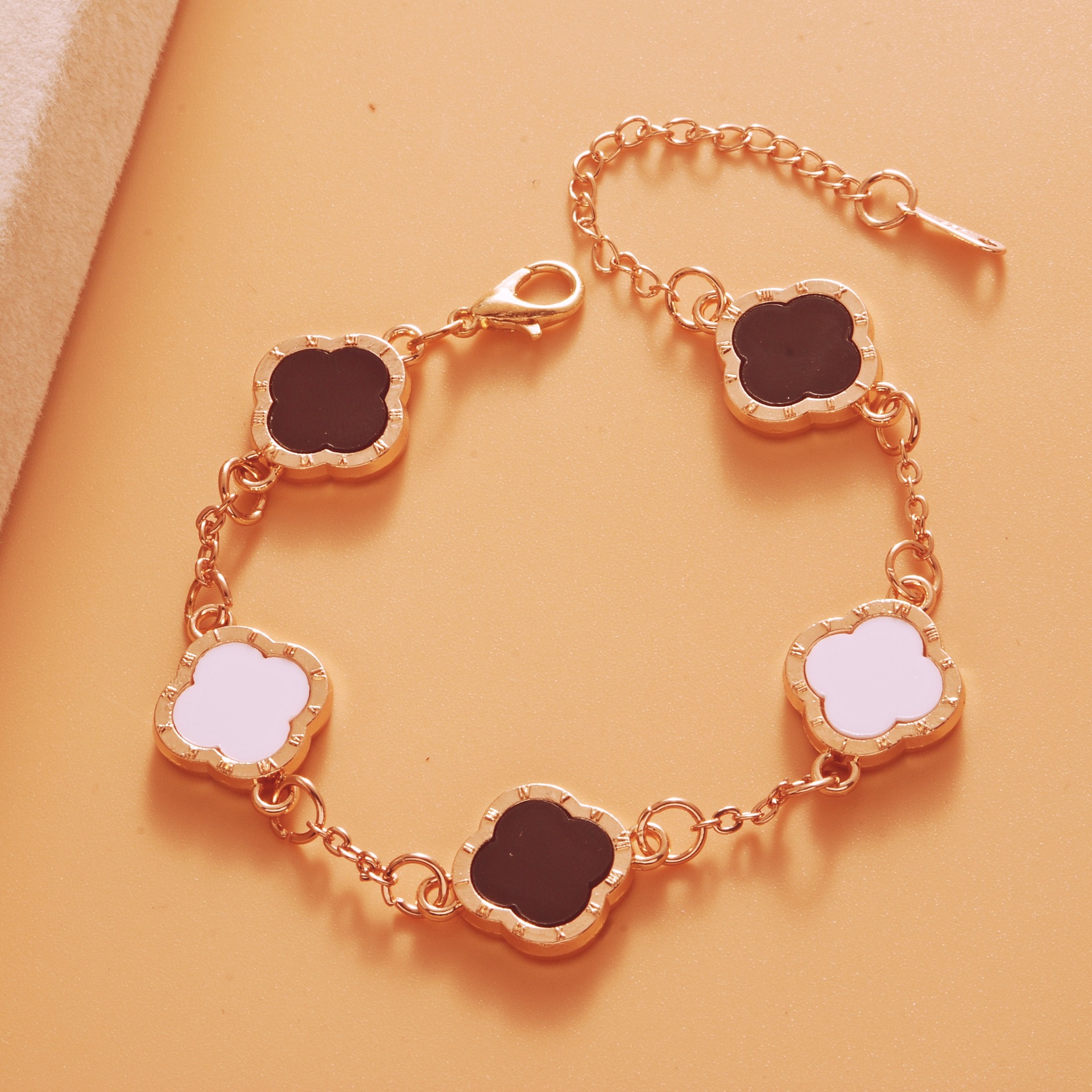 Color: Roman kc gold black and white five-leaf bracelet