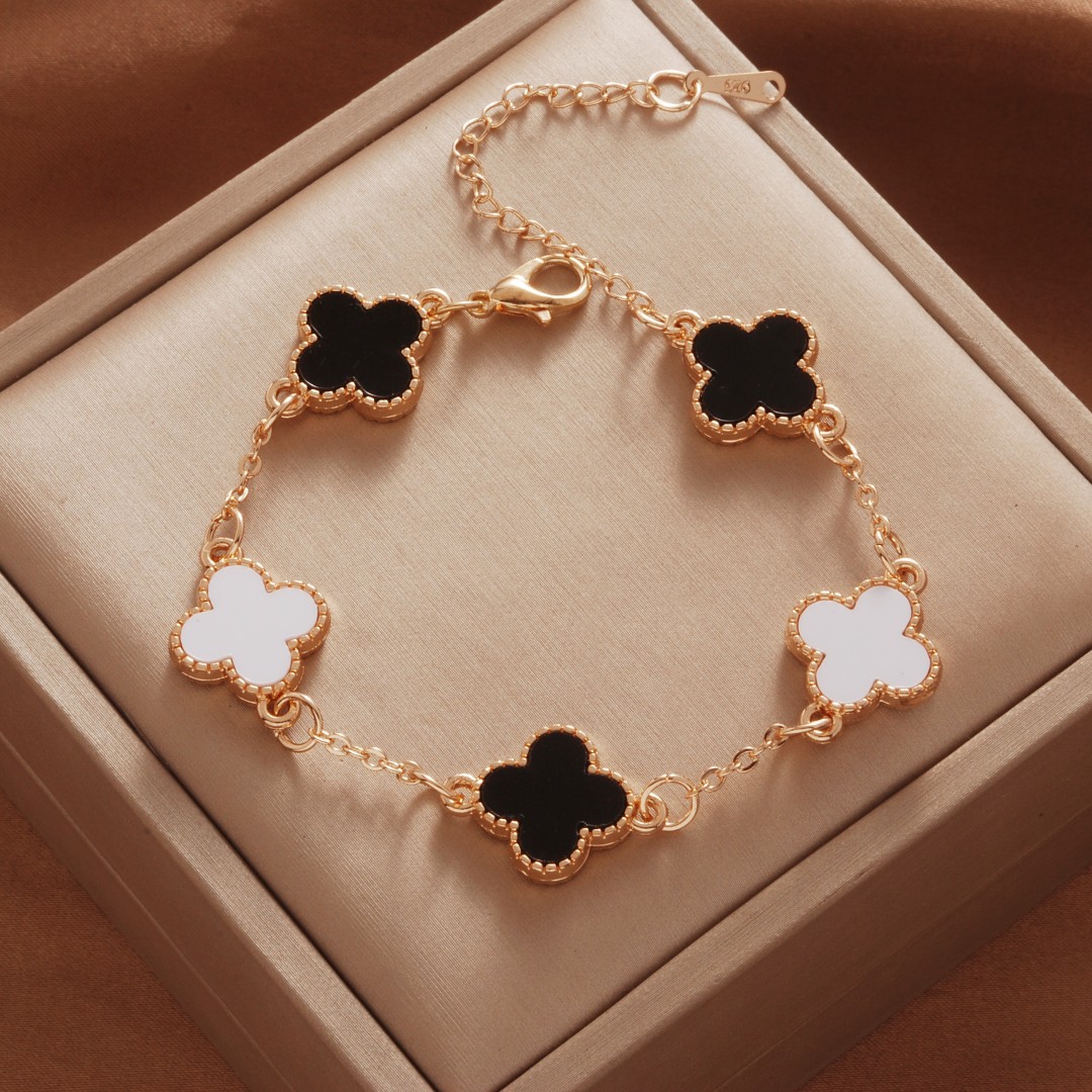 Color: White k color black and white five-leaf bracelet