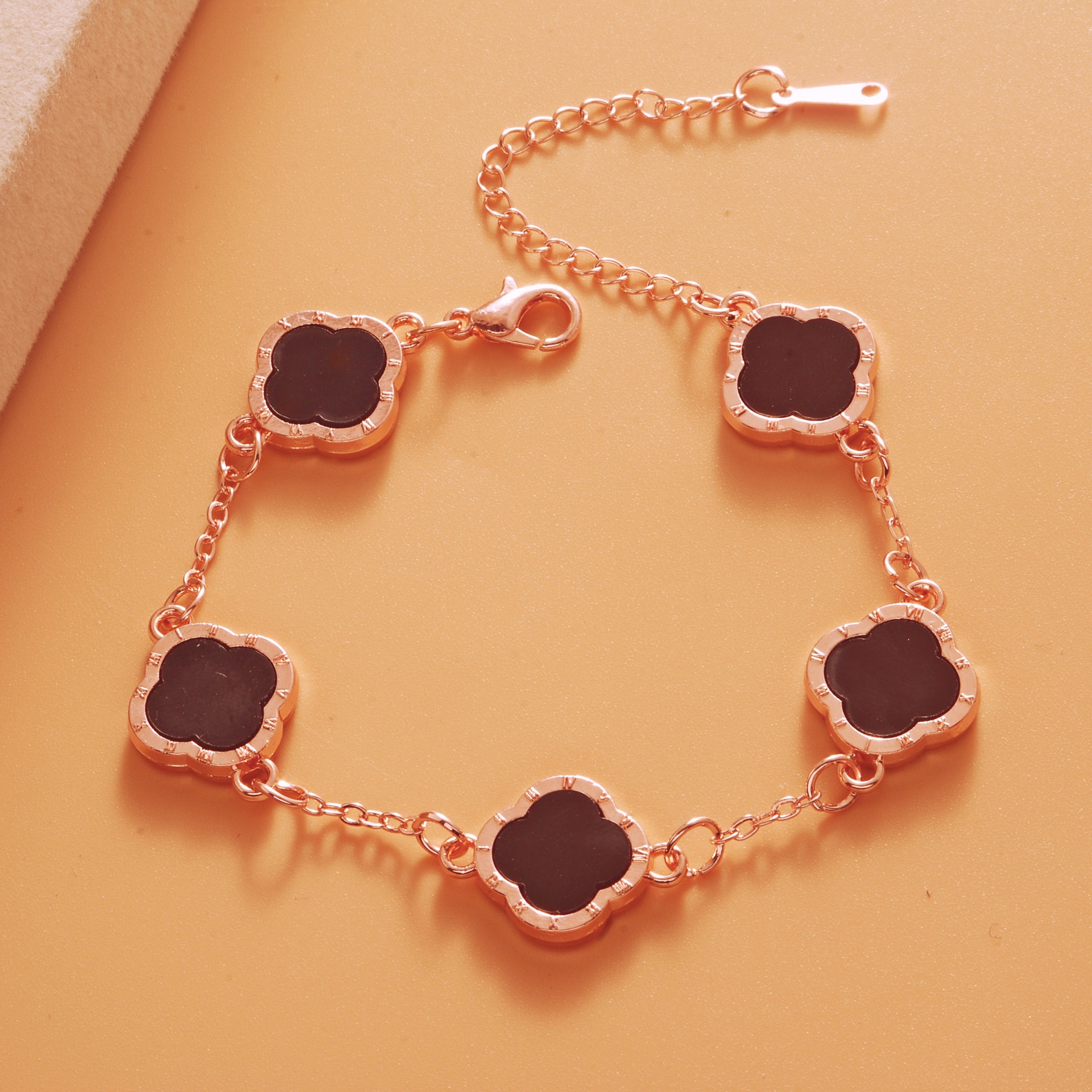 Color: Roman rose gold black five-leaf bracelet