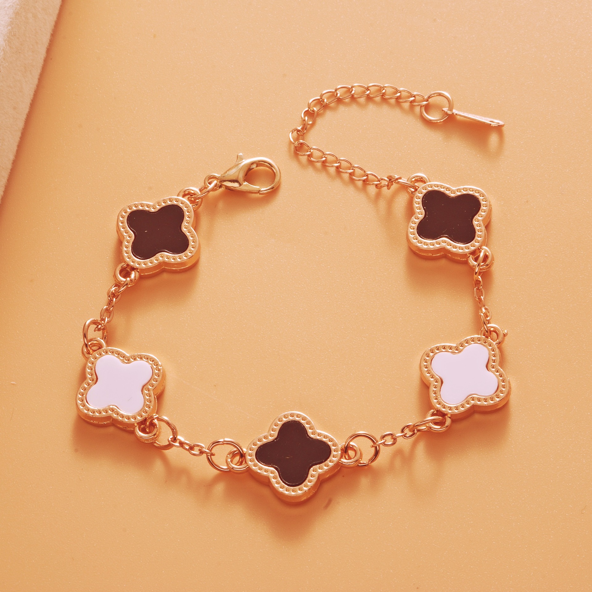 Color: Rose gold black and white five-leaf bracelet