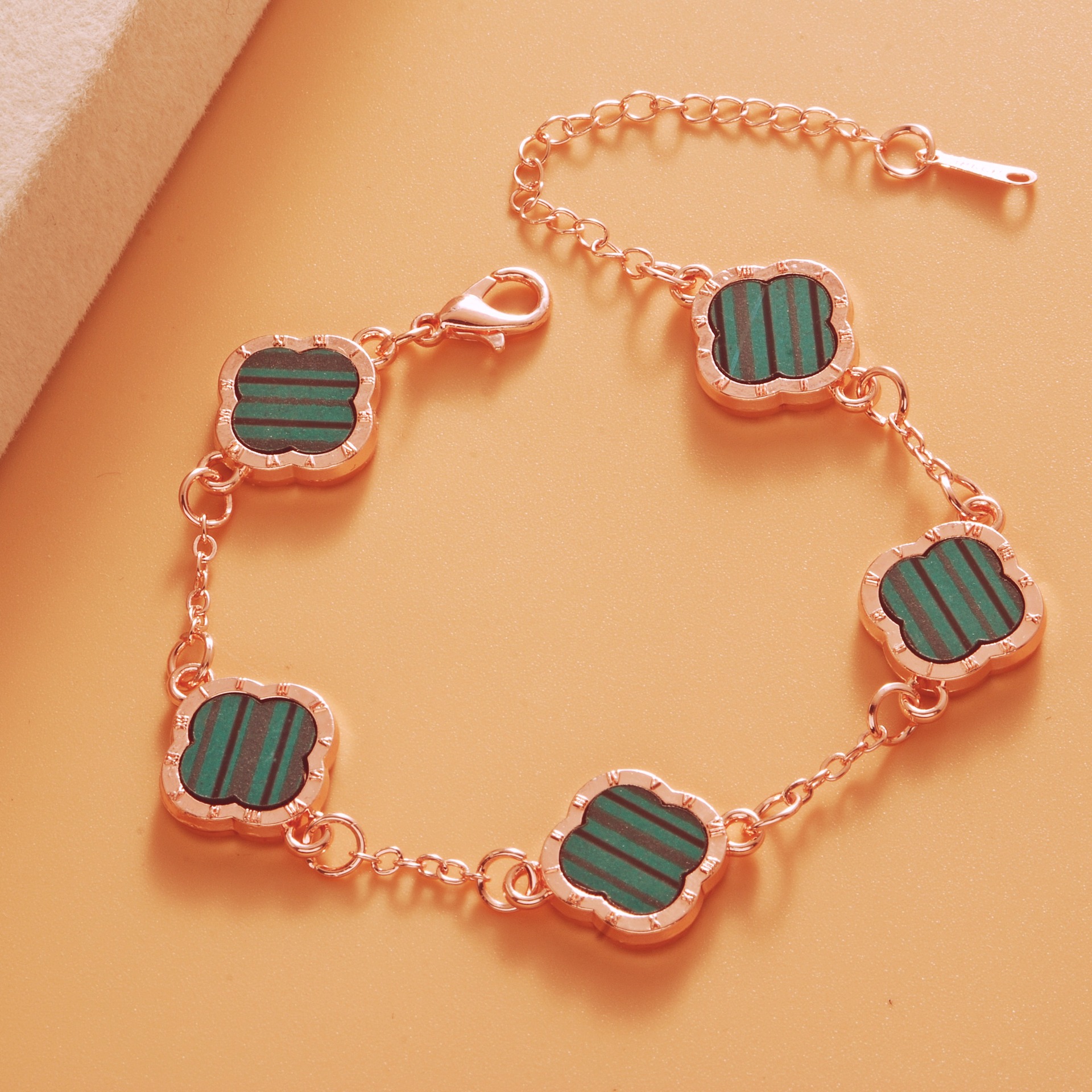 Color: Roman rose gold green five-leaf bracelet