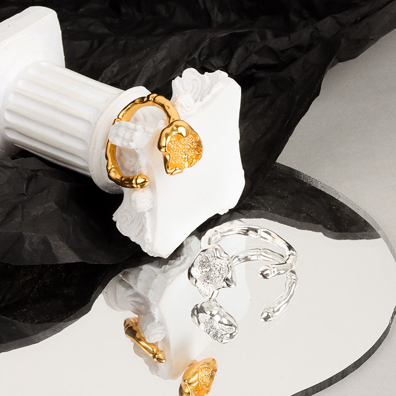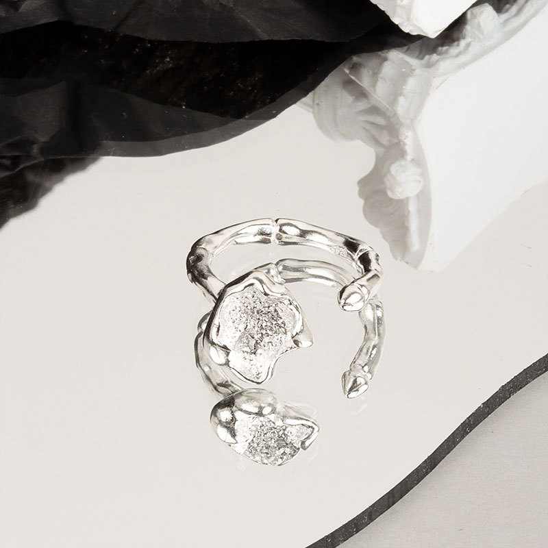 520 Korean style INS niche design irregular ancient fold texture S925 Sterling Silver open ring for women