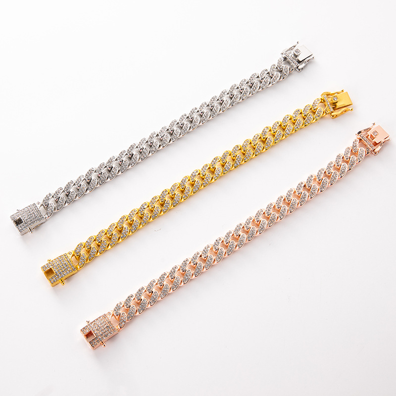European and American fashion men and women cool necklace hip-hop dance rap accessories wholesale full diamond gold chain rose gold Cuban chain powder