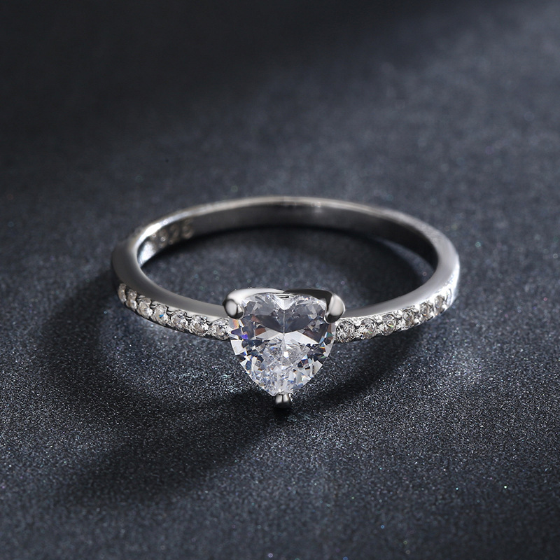 Exquisite S925 Sterling Silver Heart-Shaped High-Quality Zircon Ring for Women Korean Ins Style Fashion Ol Commuter Jewelry Cross-Border
