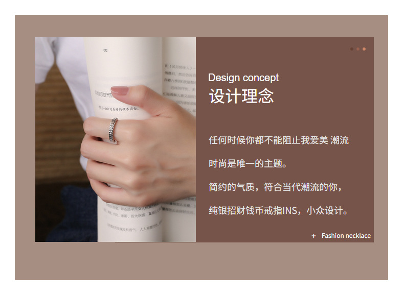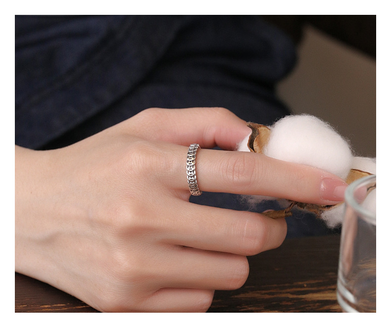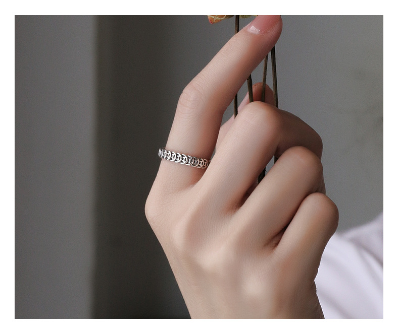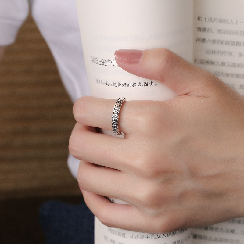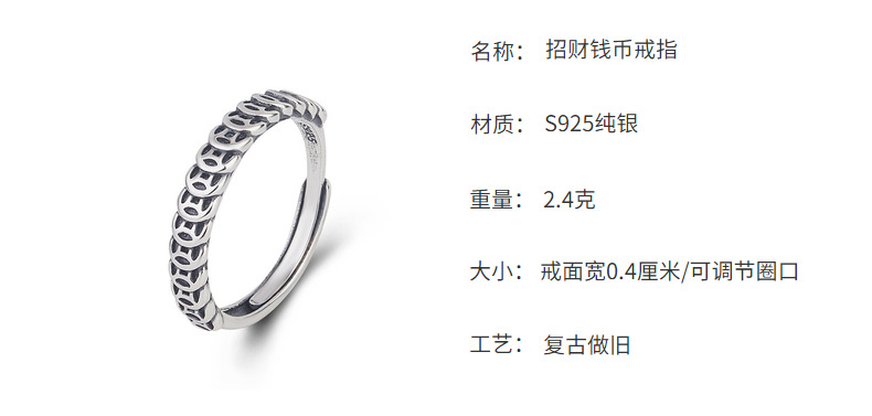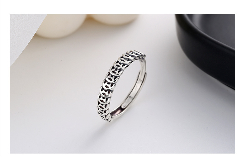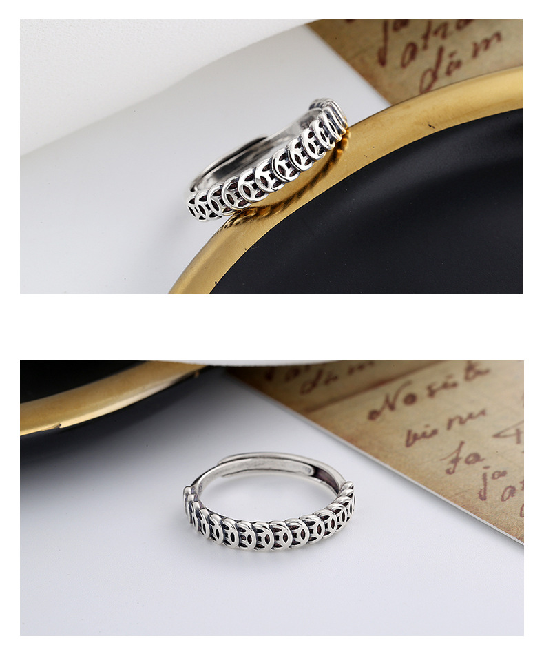 Chao Sheng S925 sterling silver simple retro do old gold and copper coin ring money rolling Chinese art food Ring women