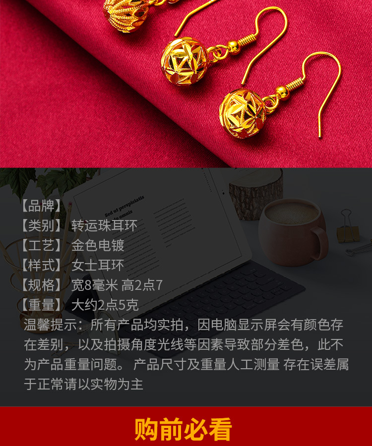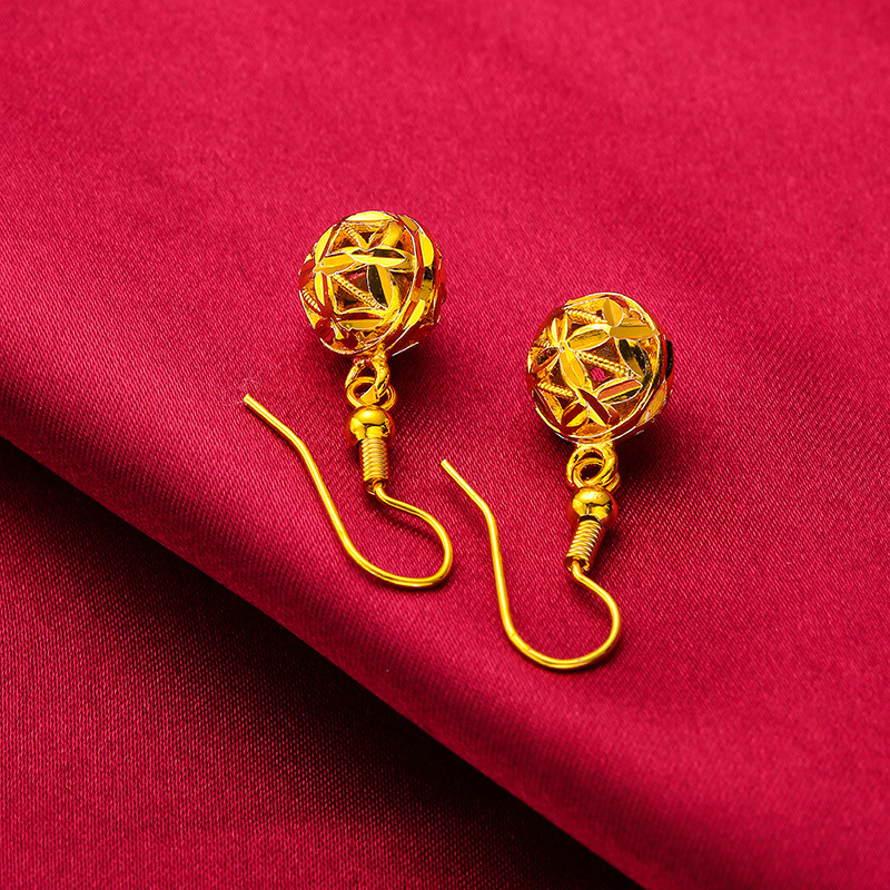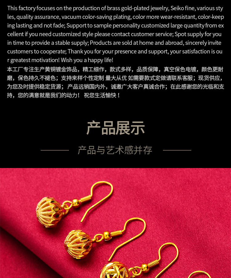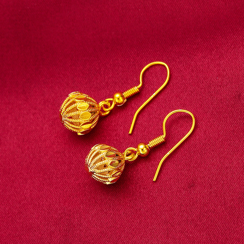 Cross-border accessories long lucky beads earrings brass gold plated vintage bridal fashion earrings Vietnam gold earrings for women